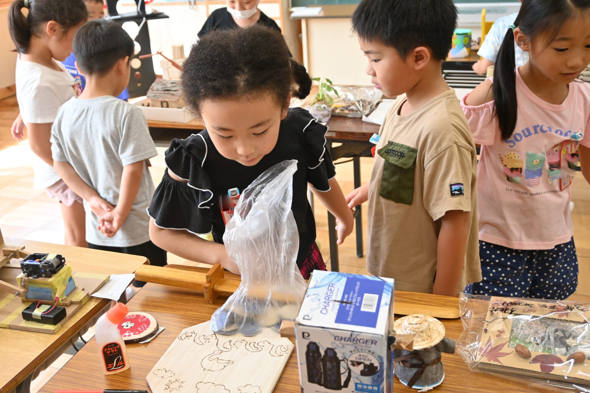 2024.09.02 1年生 今日の1年生 管理者学校 教室に元気な子供たちの笑顔が戻り、一週間が経ちました。 今日は、図工の時間に全校生が夏休みに作った作品を見に行きました。 友達の作品や、上級生の児童が作ったハイレベルな作品に大盛り上がりの1年生でした。 教室に戻ると、残った時間で粘土をしました。 いつにも増して熱心に取り組む子供たち。 真剣な表情も素敵ですね。 また、今日はタブレットを使った学習も行いました。 新しいことにどんどん挑戦し、その分成長していく1年生、頼もしいです。 今日から、自主学習も始まります。保護者の方々にはお手数をおかけしますが、御支援よろしくお願い致します。 #1年生