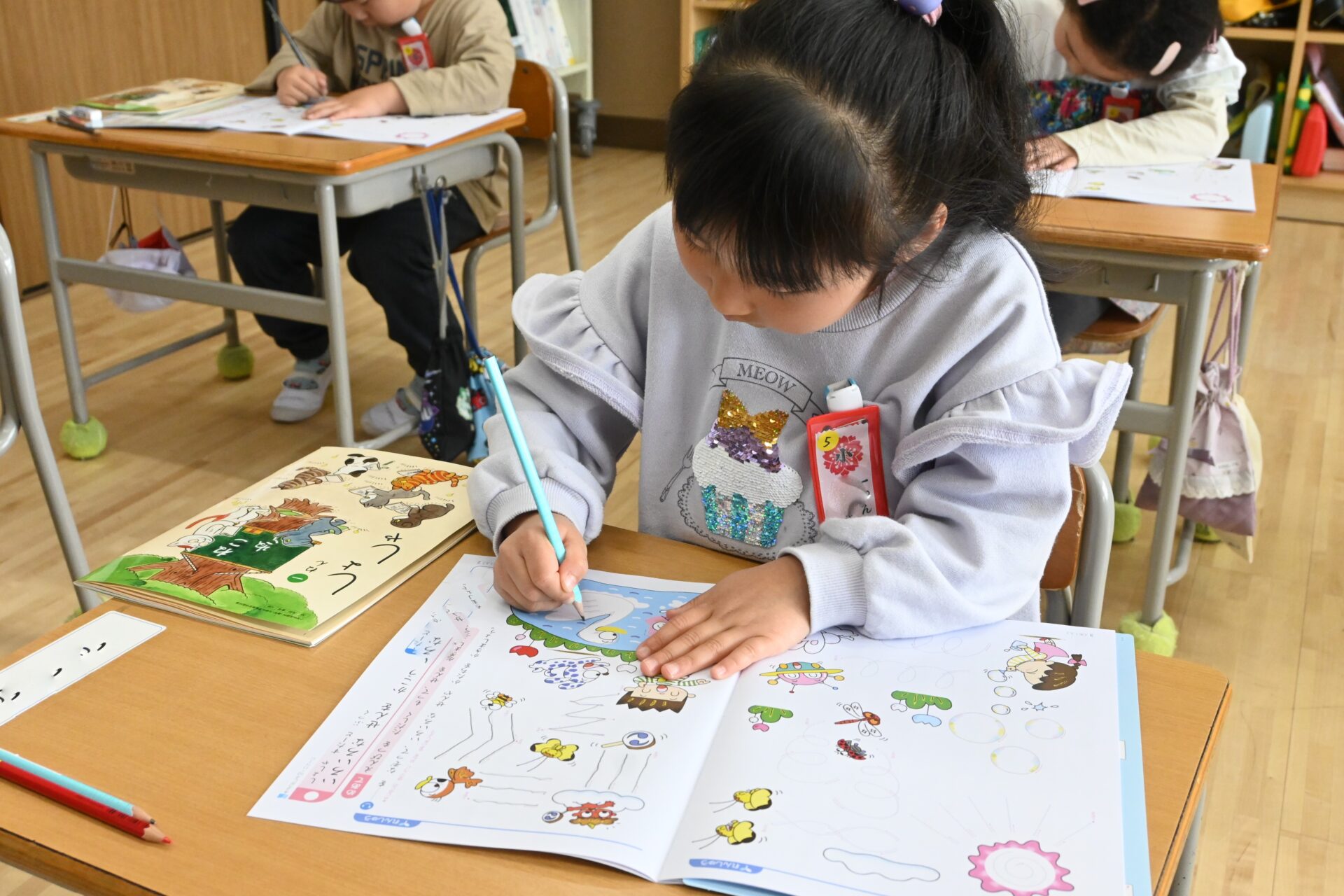 今日は初めての書写と音楽の授業がありました。