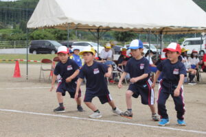 全力かけっこでは、最後まであきらめずに走りました。