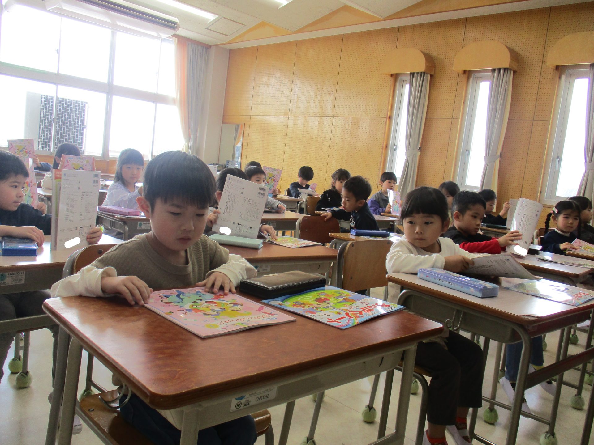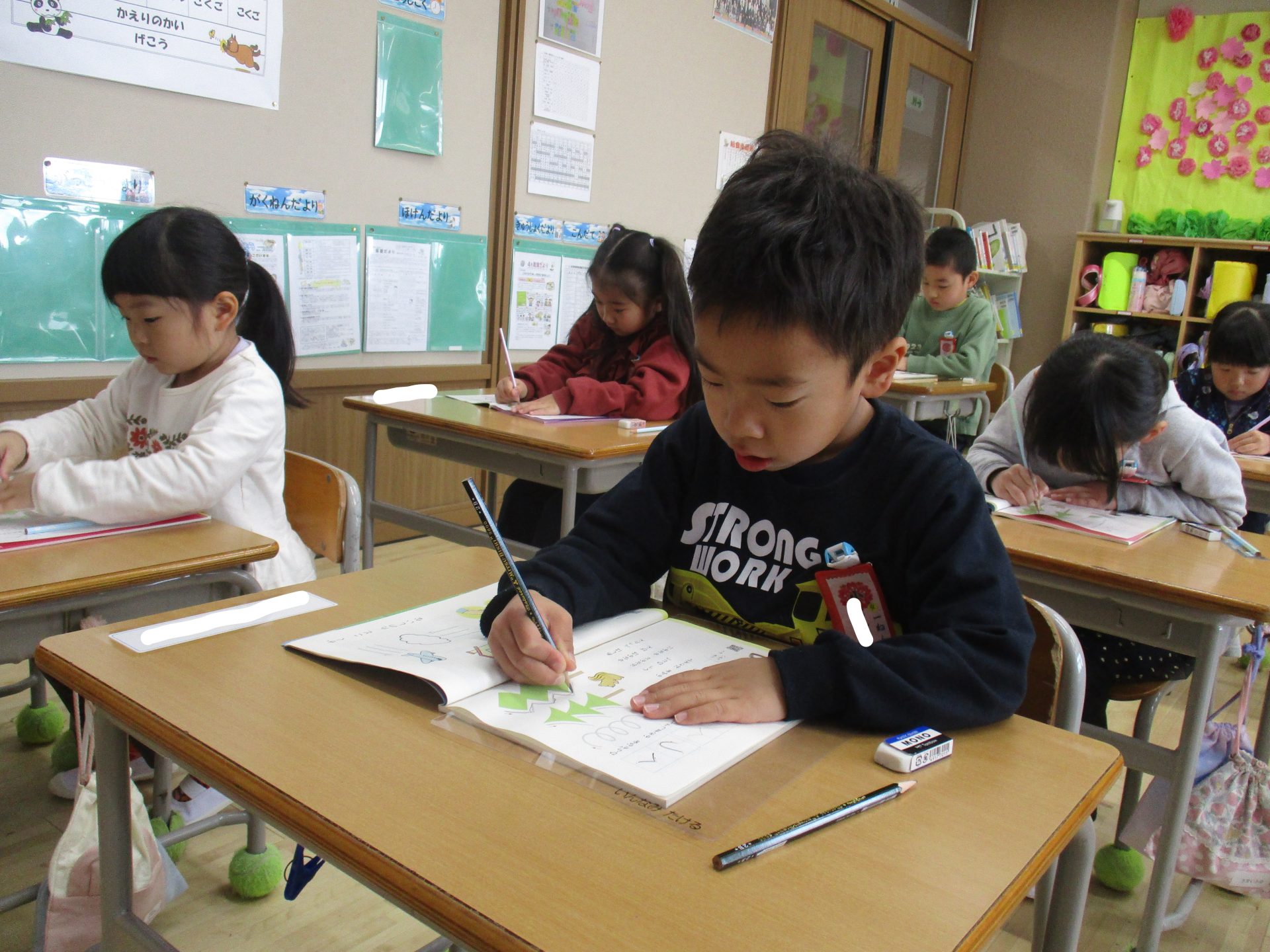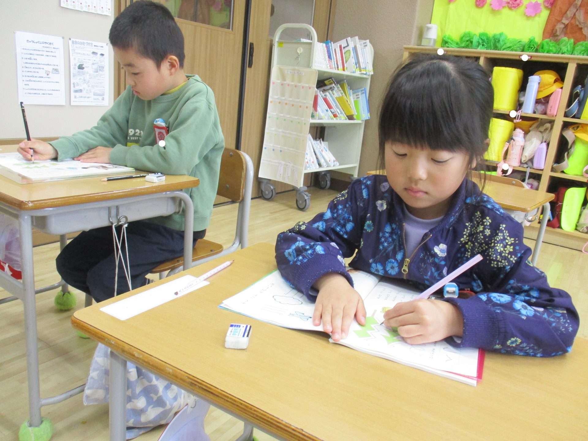 教室では、良い姿勢や鉛筆の持ち方を学習しました。