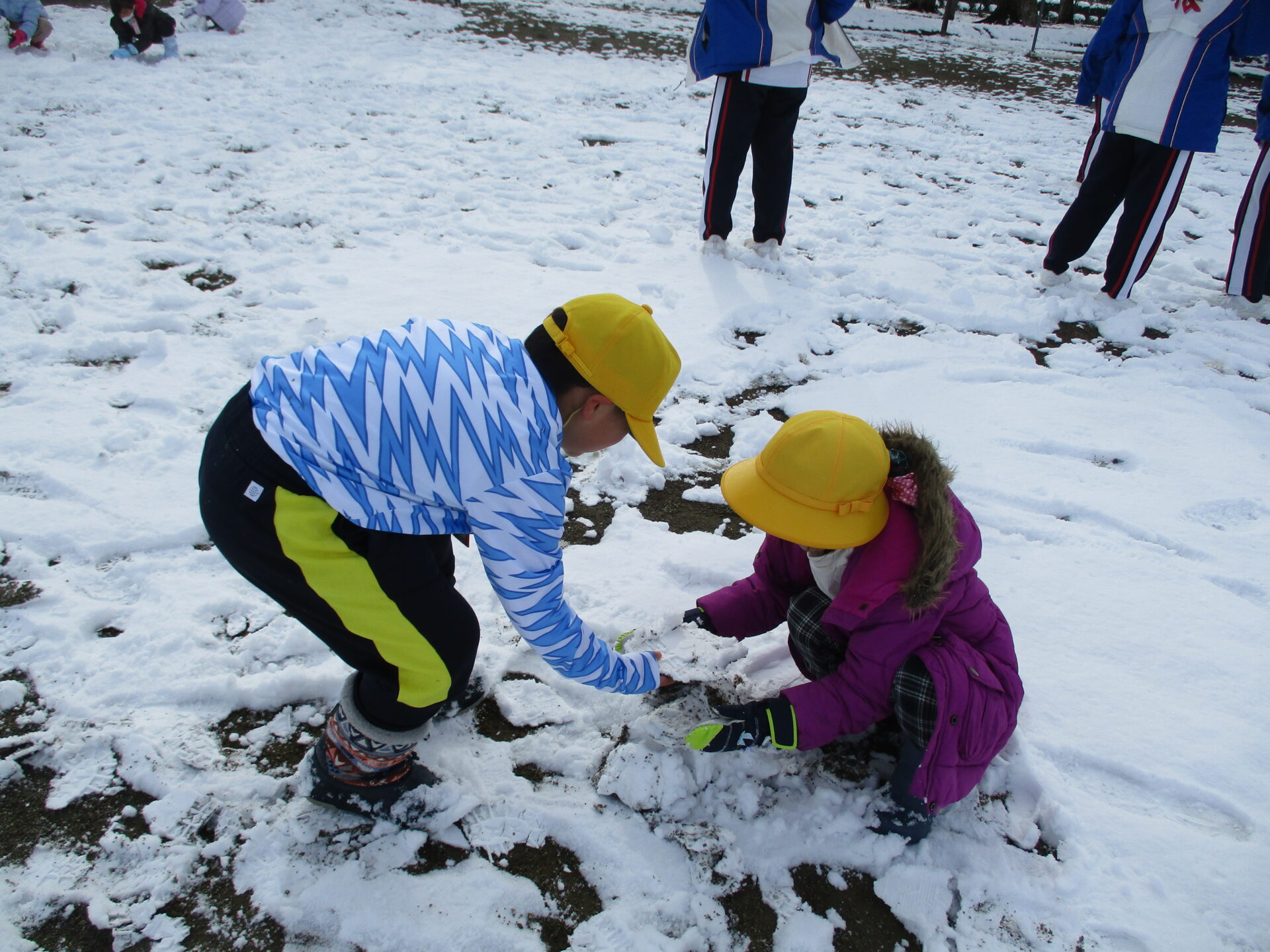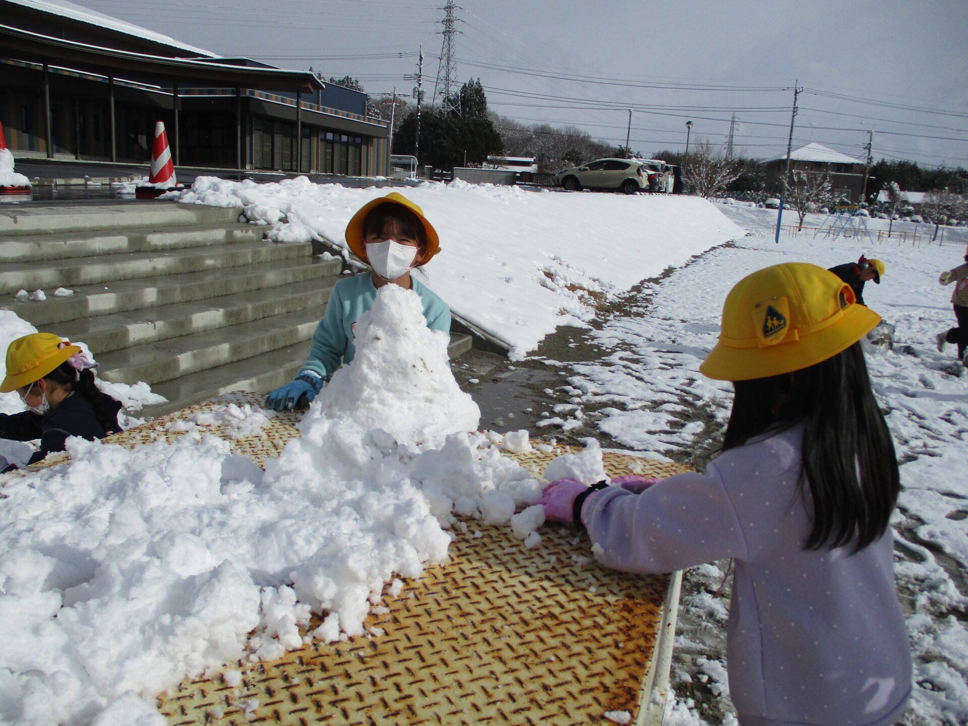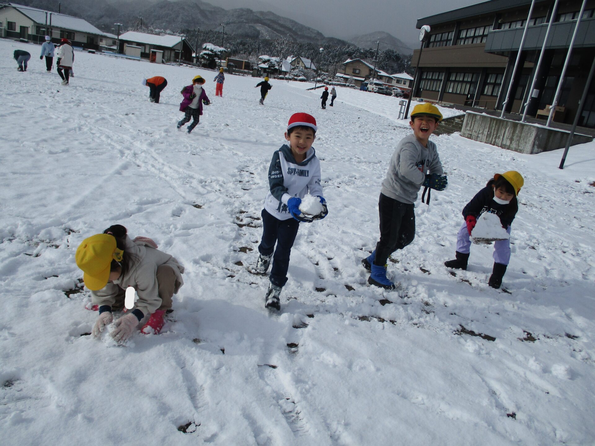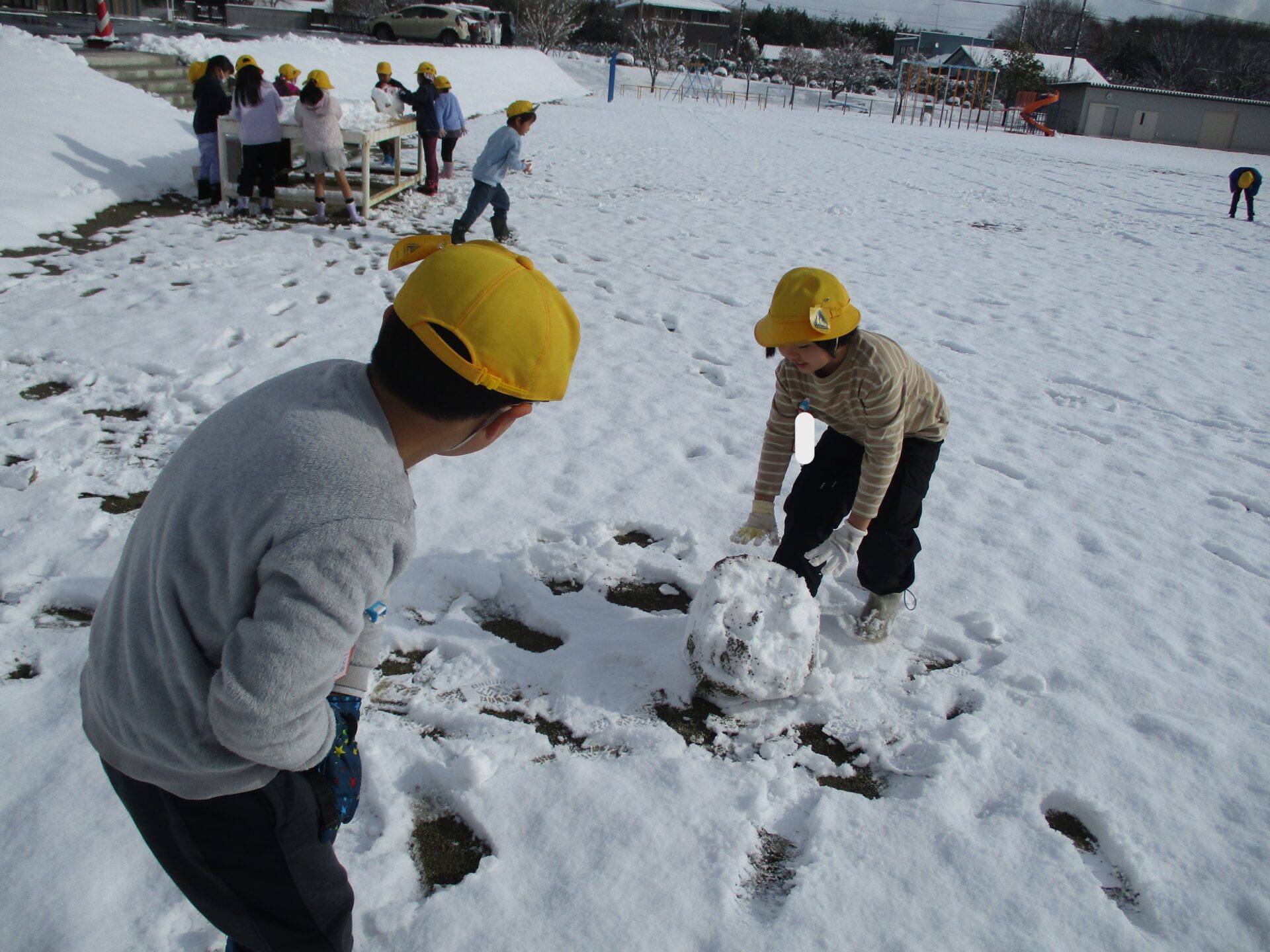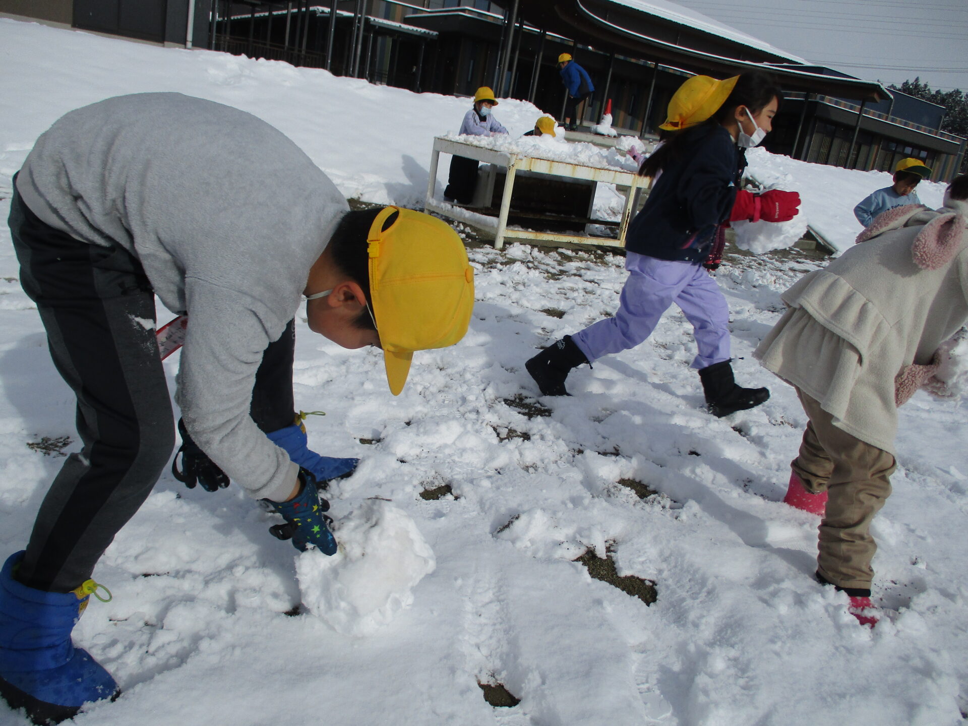 業間には雪がやみ、太陽が出たので、雪遊びができました。