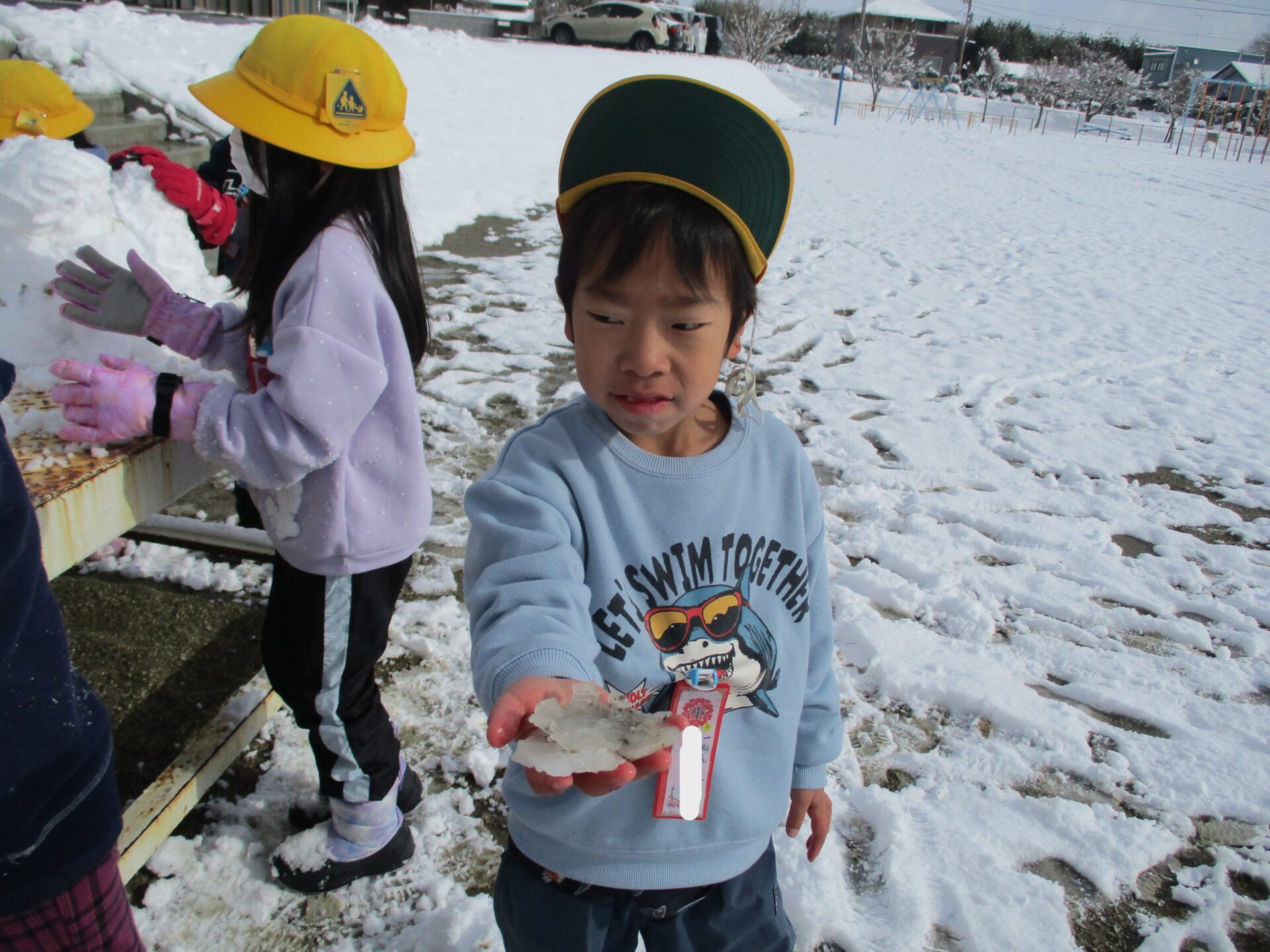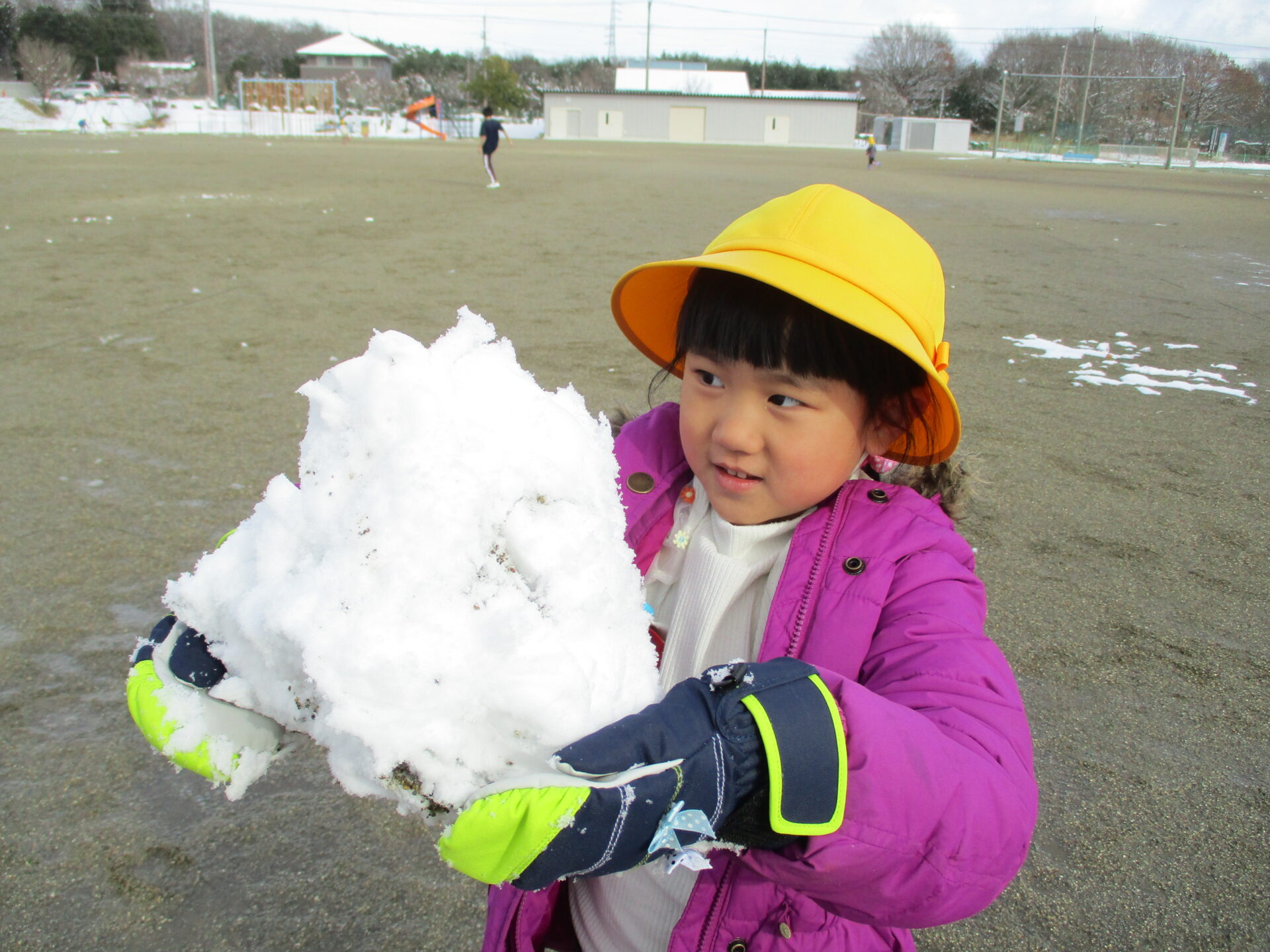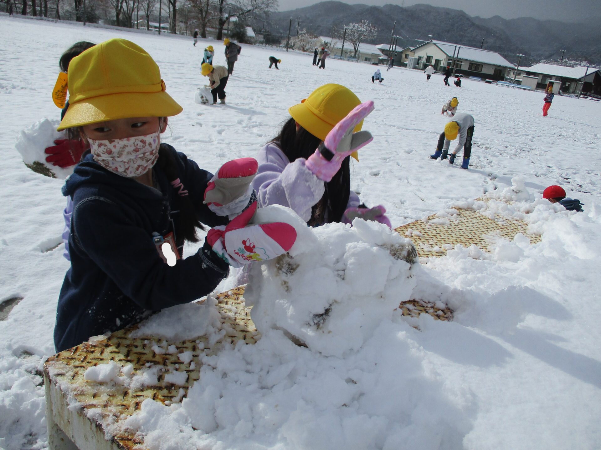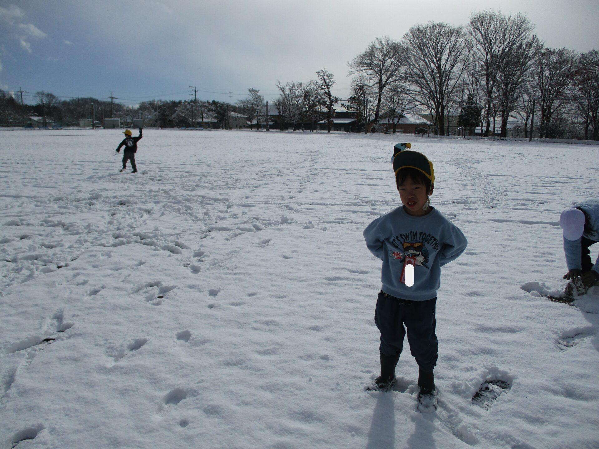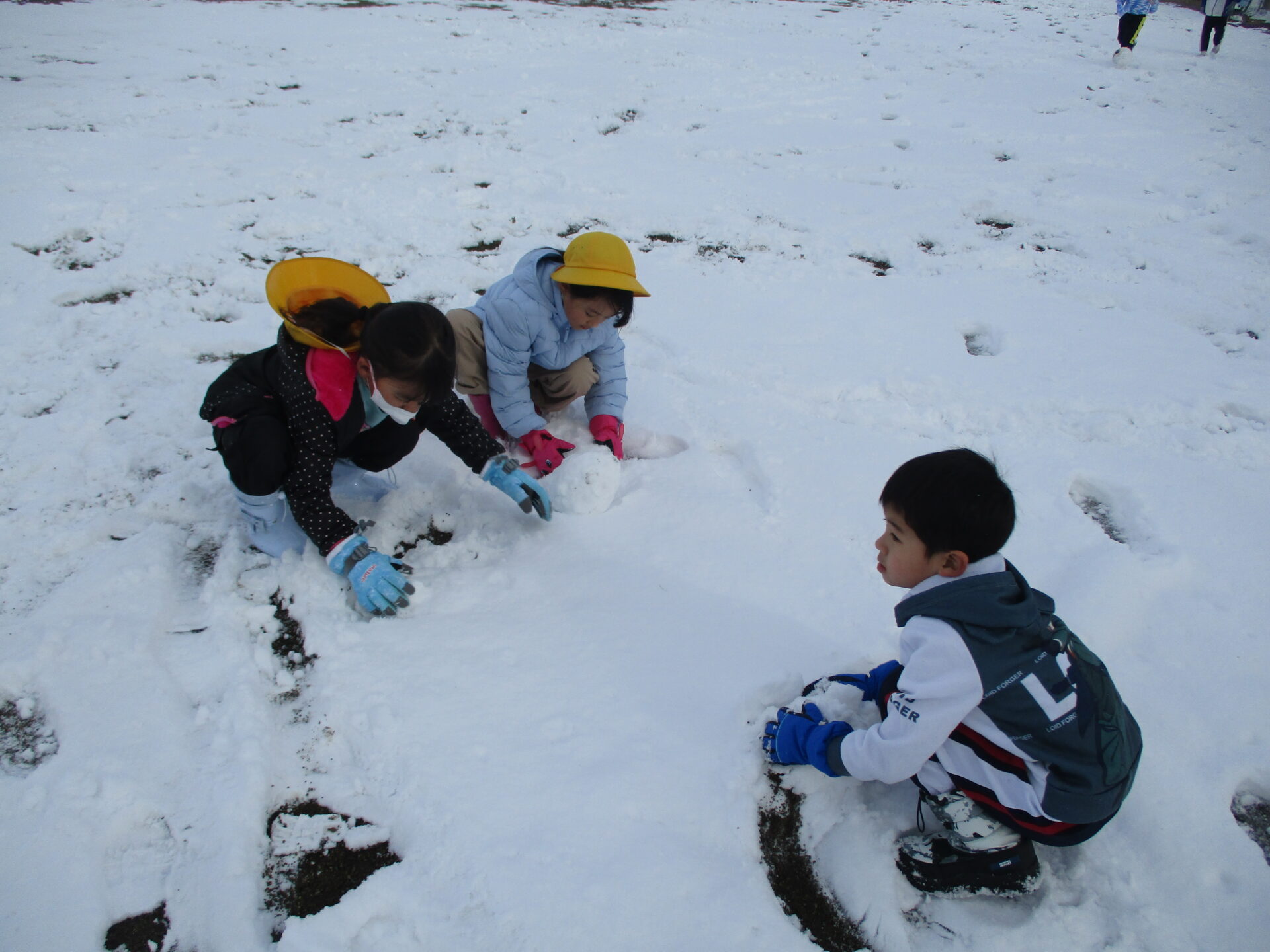 業間には雪がやみ、太陽が出たので、雪遊びができました。