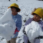 業間には雪がやみ、太陽が出たので、雪遊びができました。