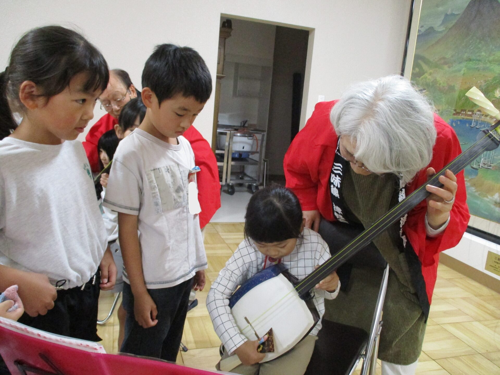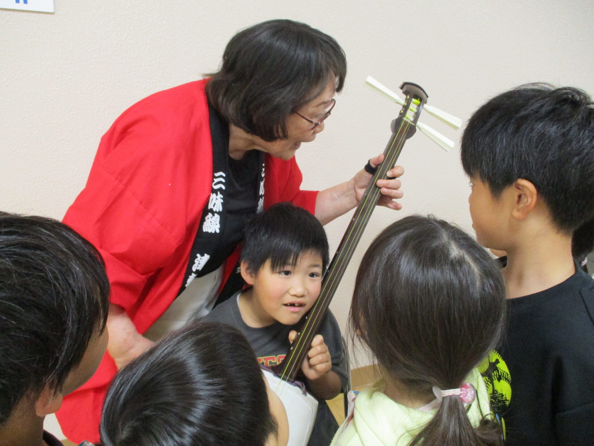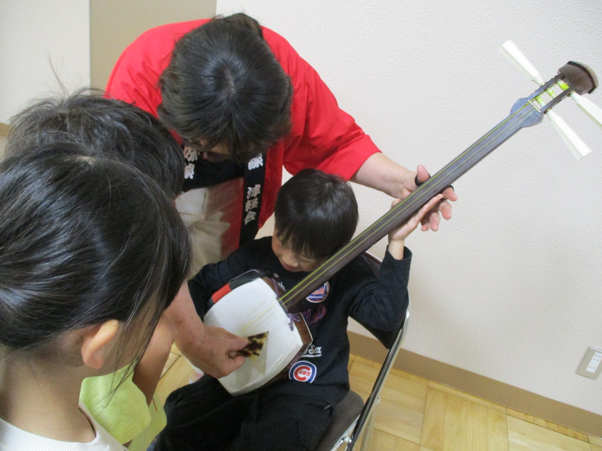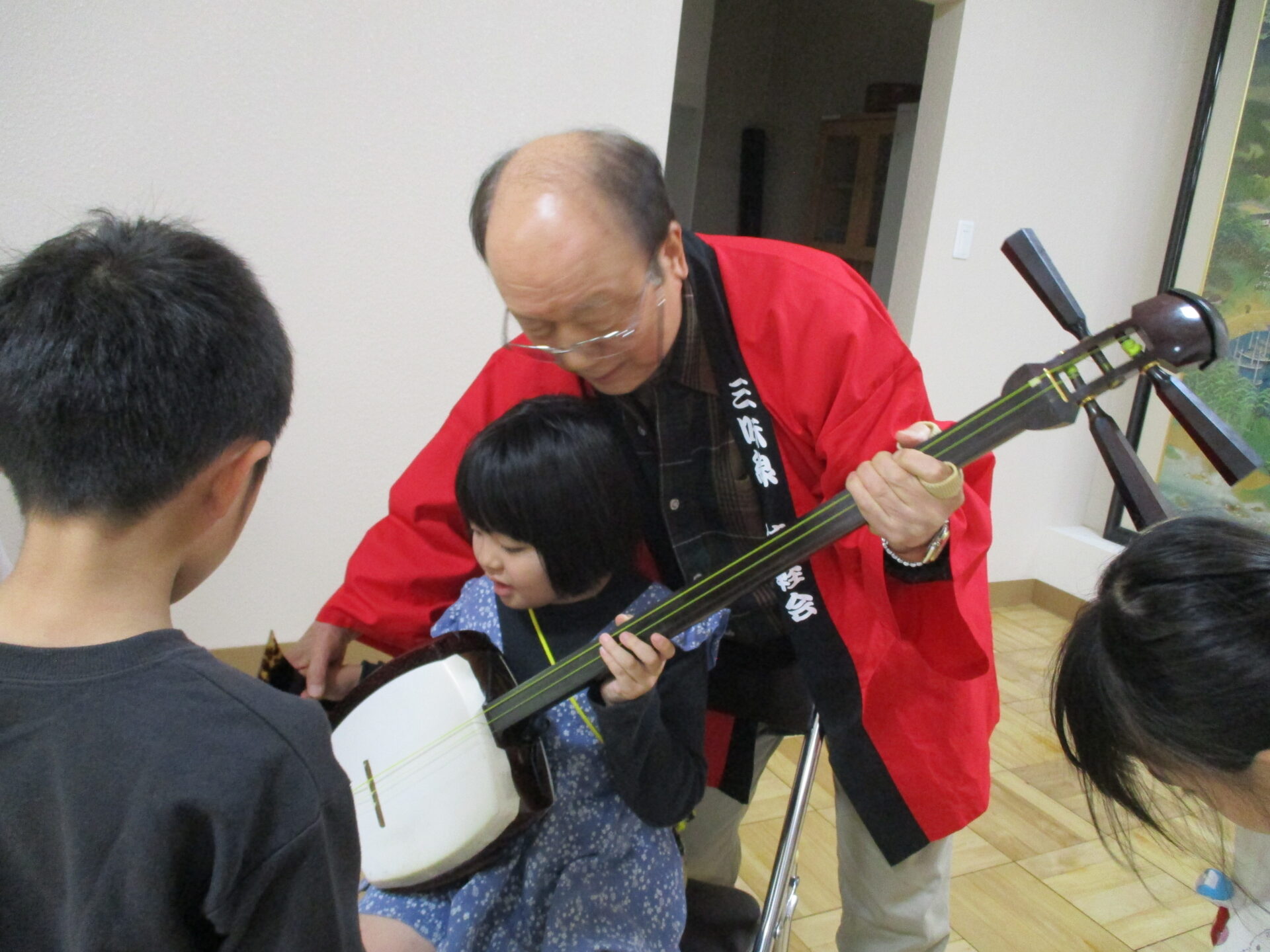 休憩中には三味線を触らせてもらいました。