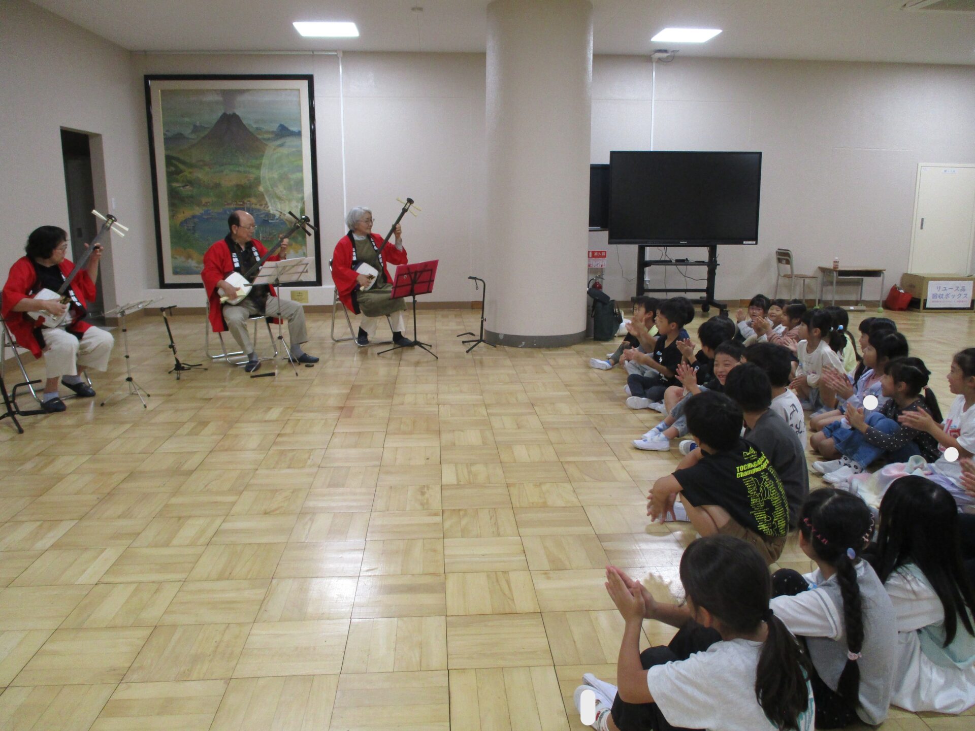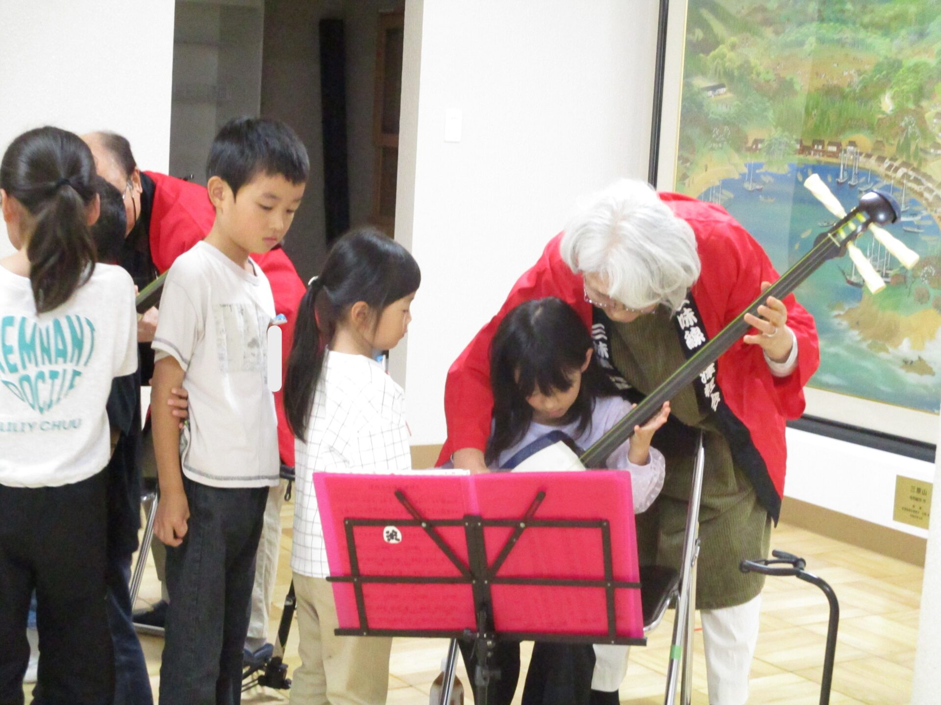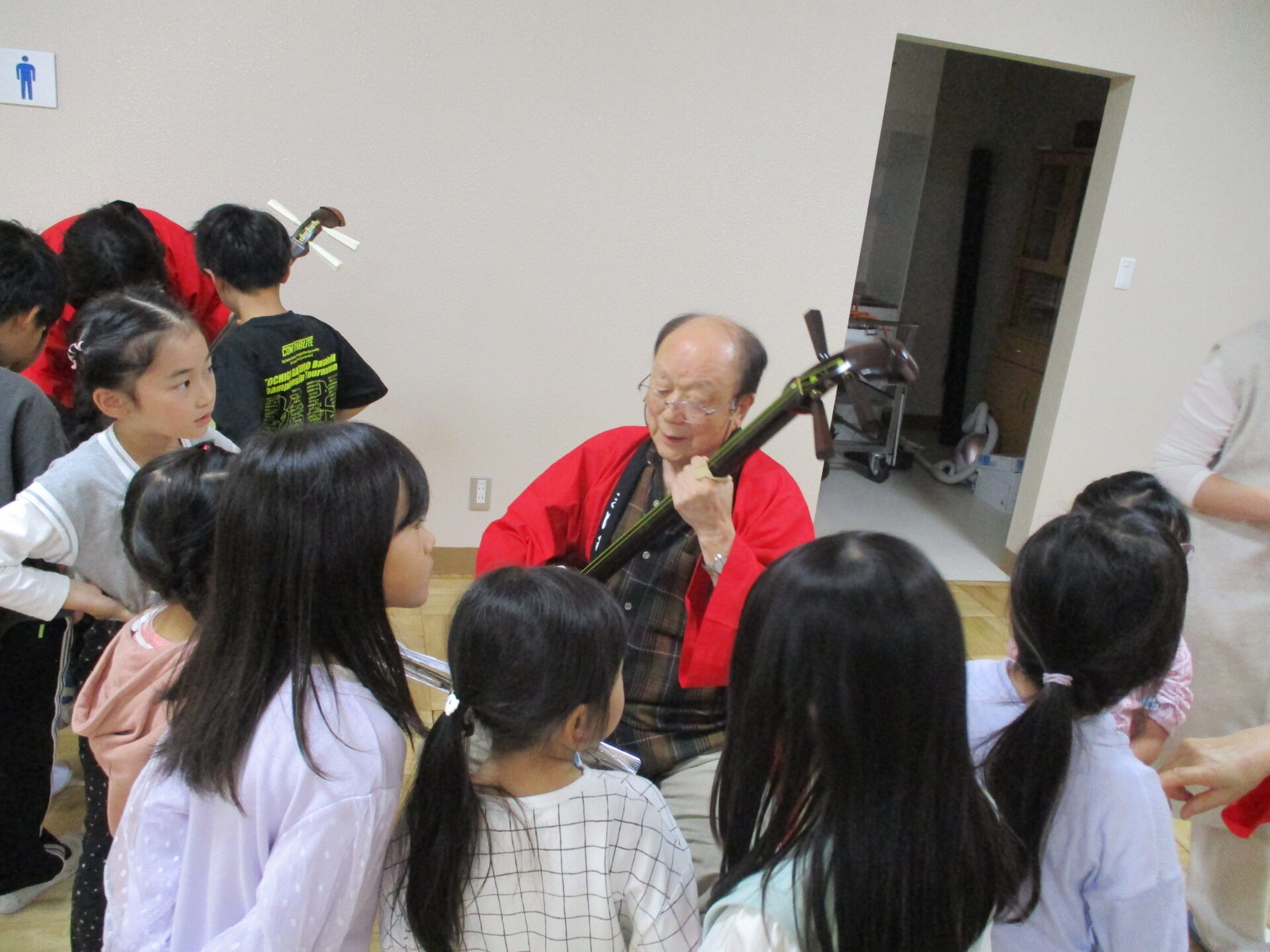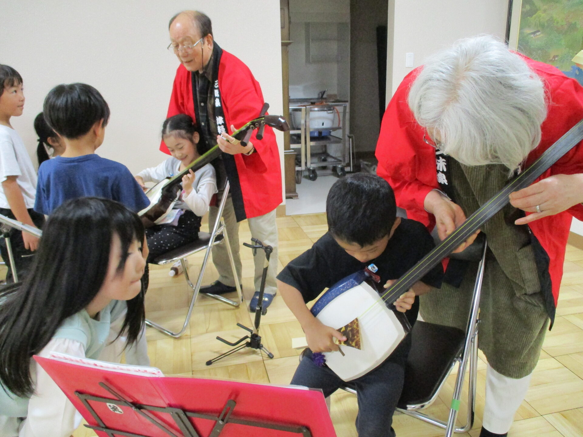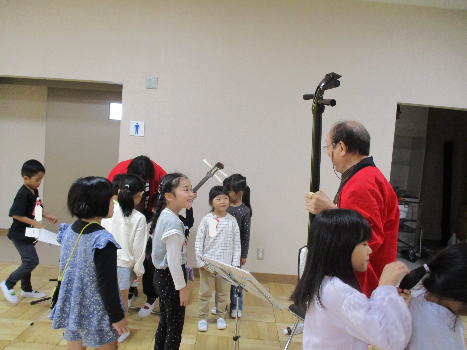 休憩中には三味線を触らせてもらいました。