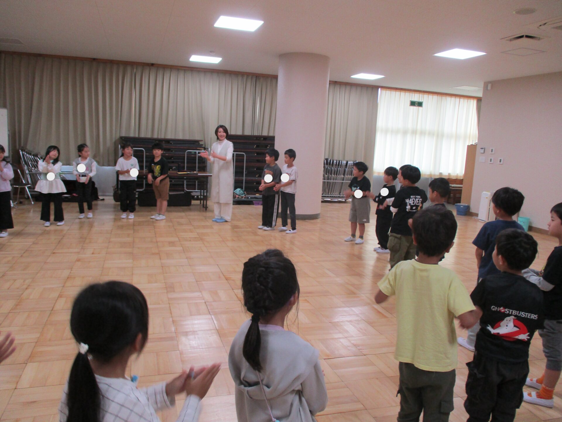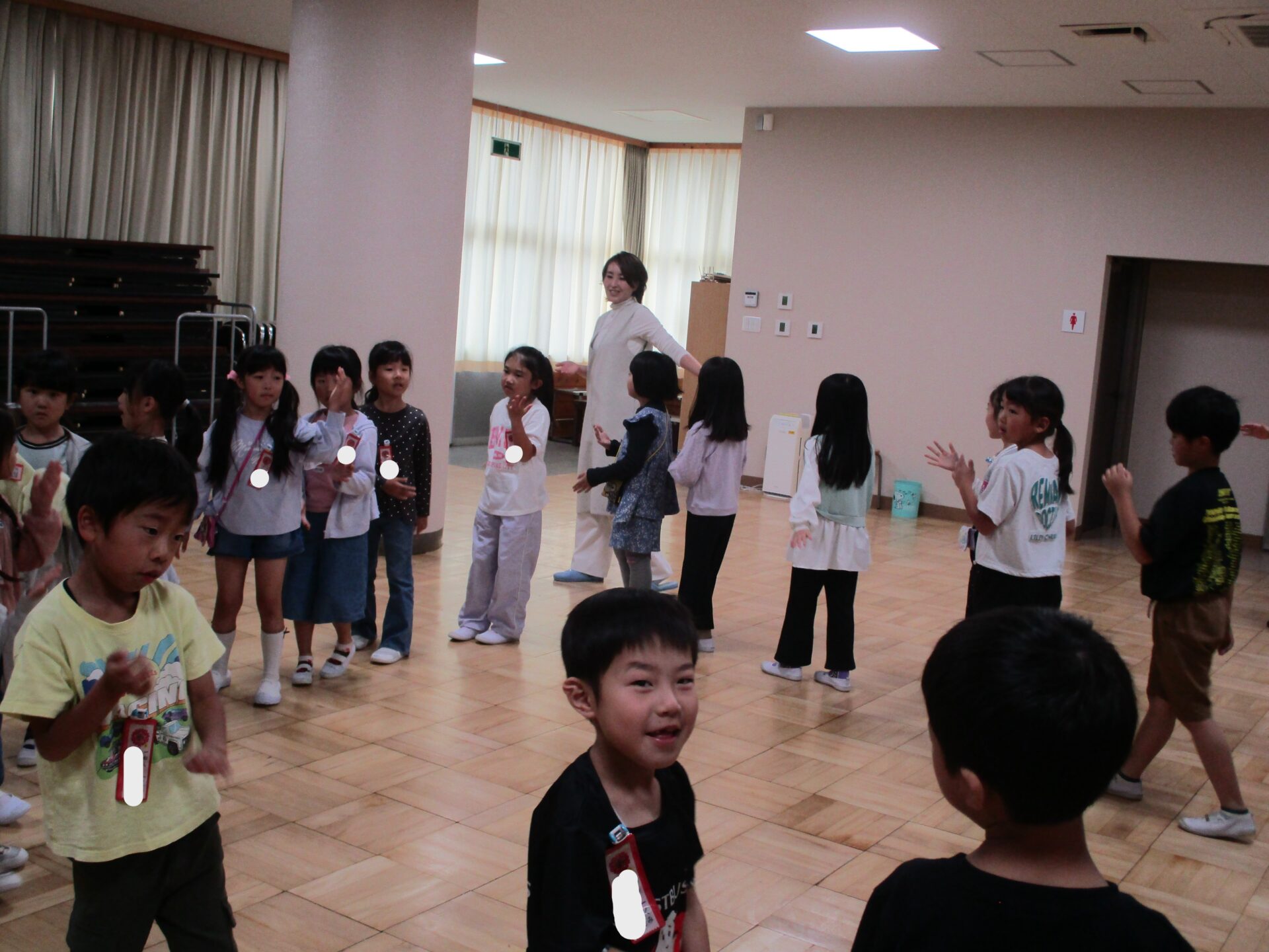 塩原音頭は保育園のときに踊ったことがある子たちもいますが、忘れてしまっている子も多く、教わりながら踊ってみました。