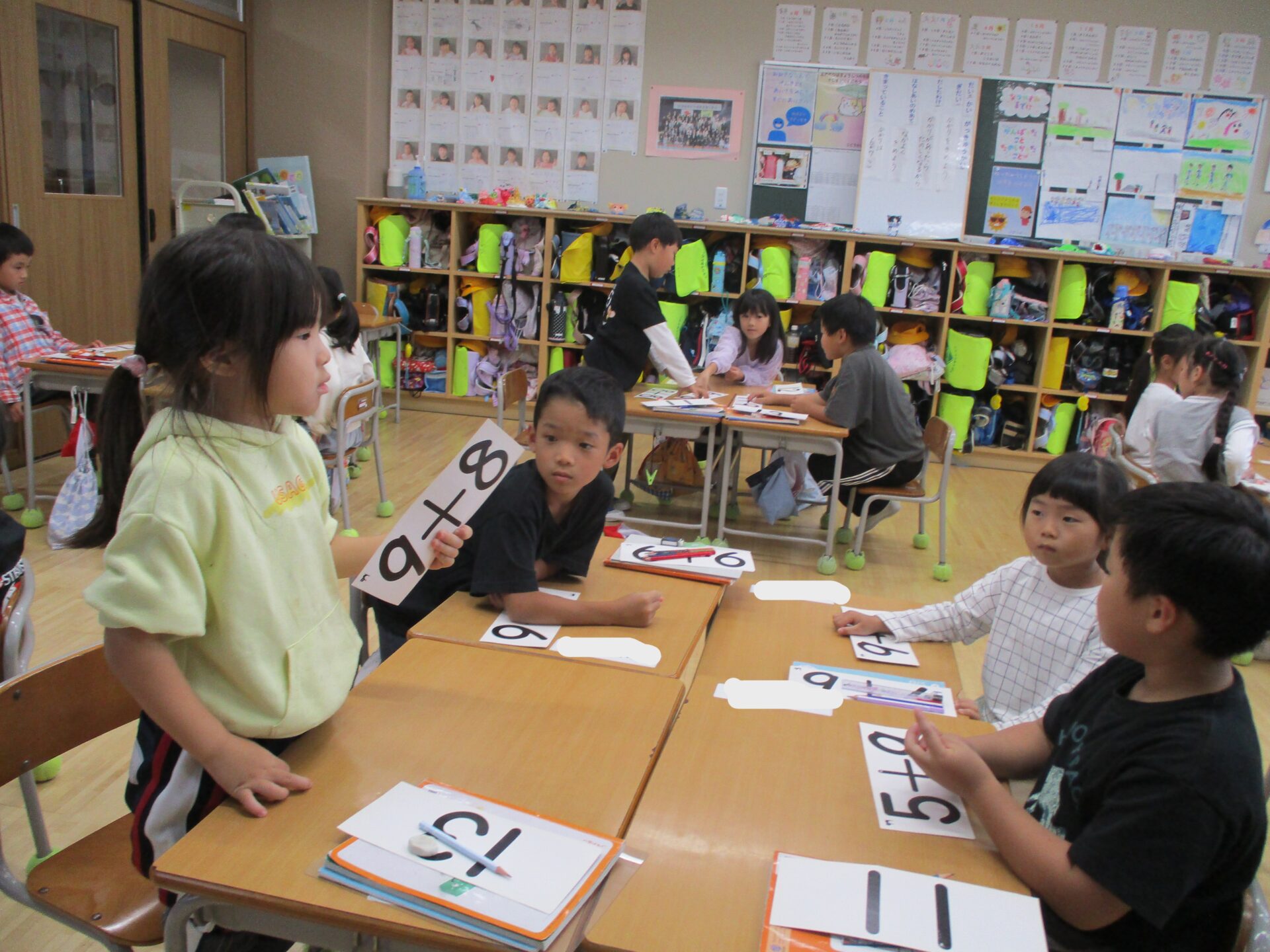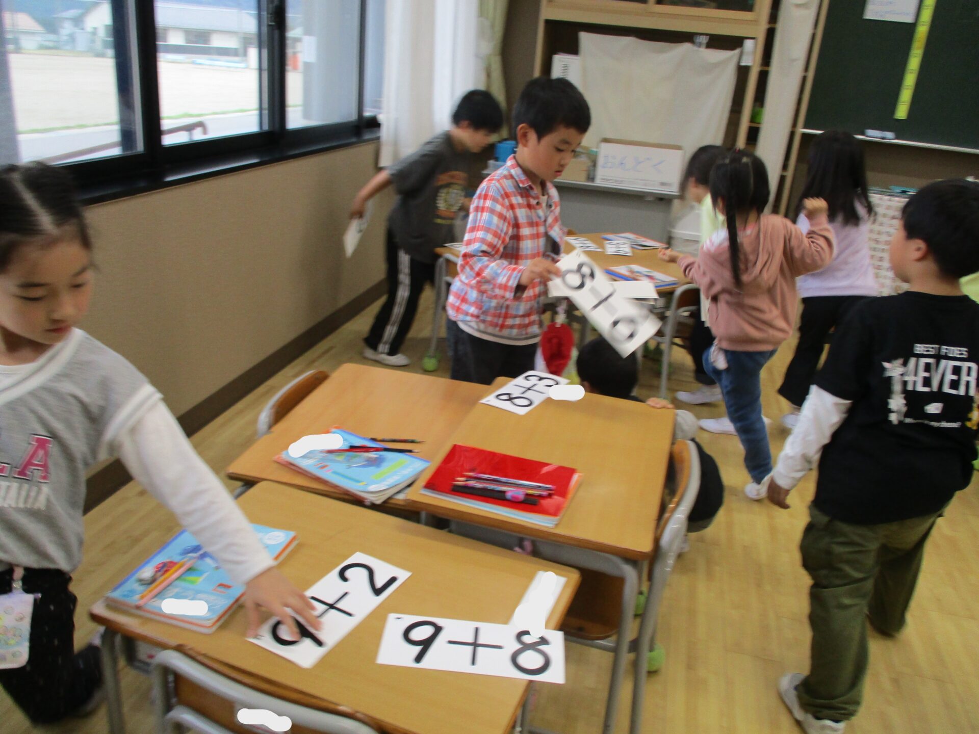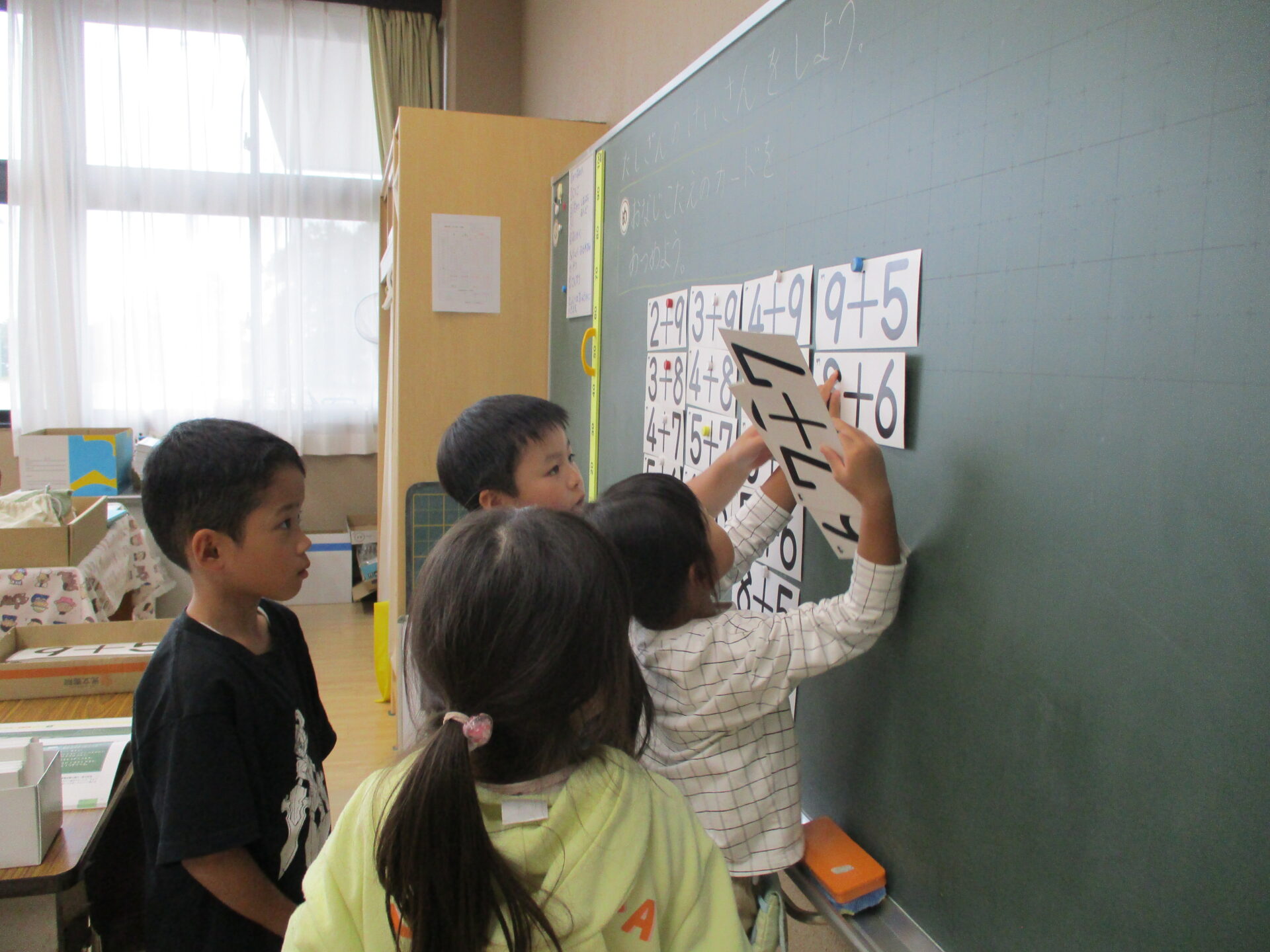 算数の時間にはグループで計算カードを使ってカルタとりをしました。