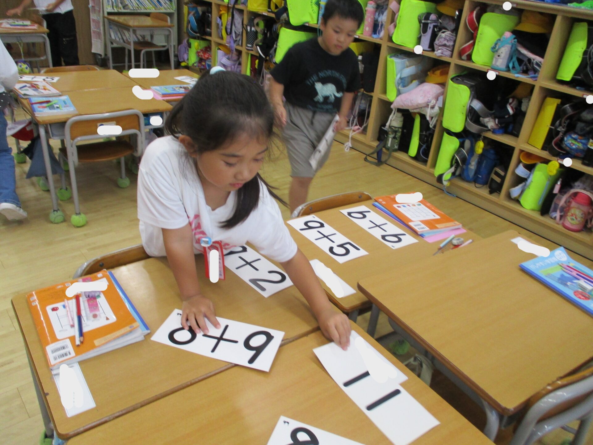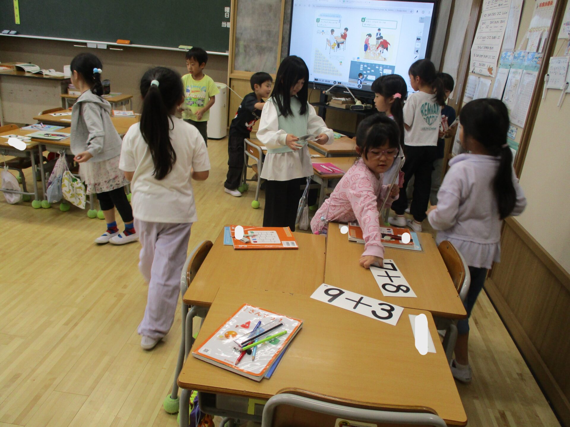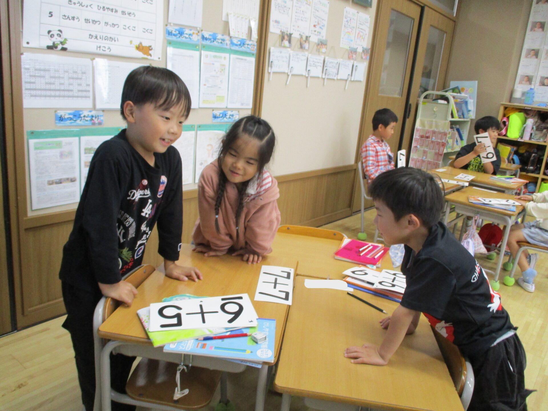 算数の時間にはグループで計算カードを使ってカルタとりをしました。