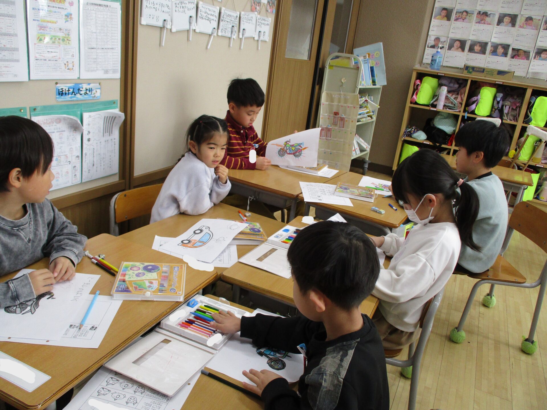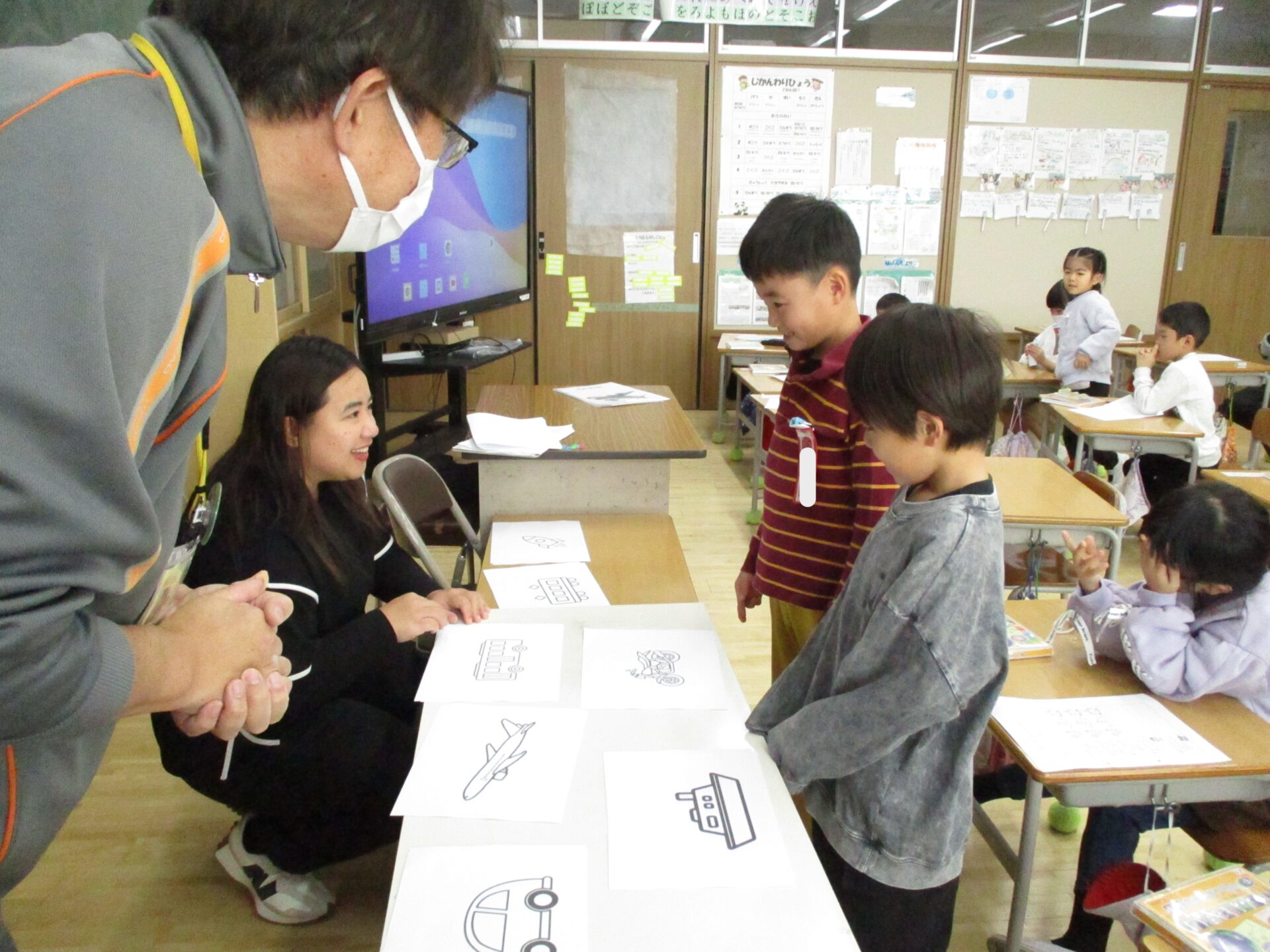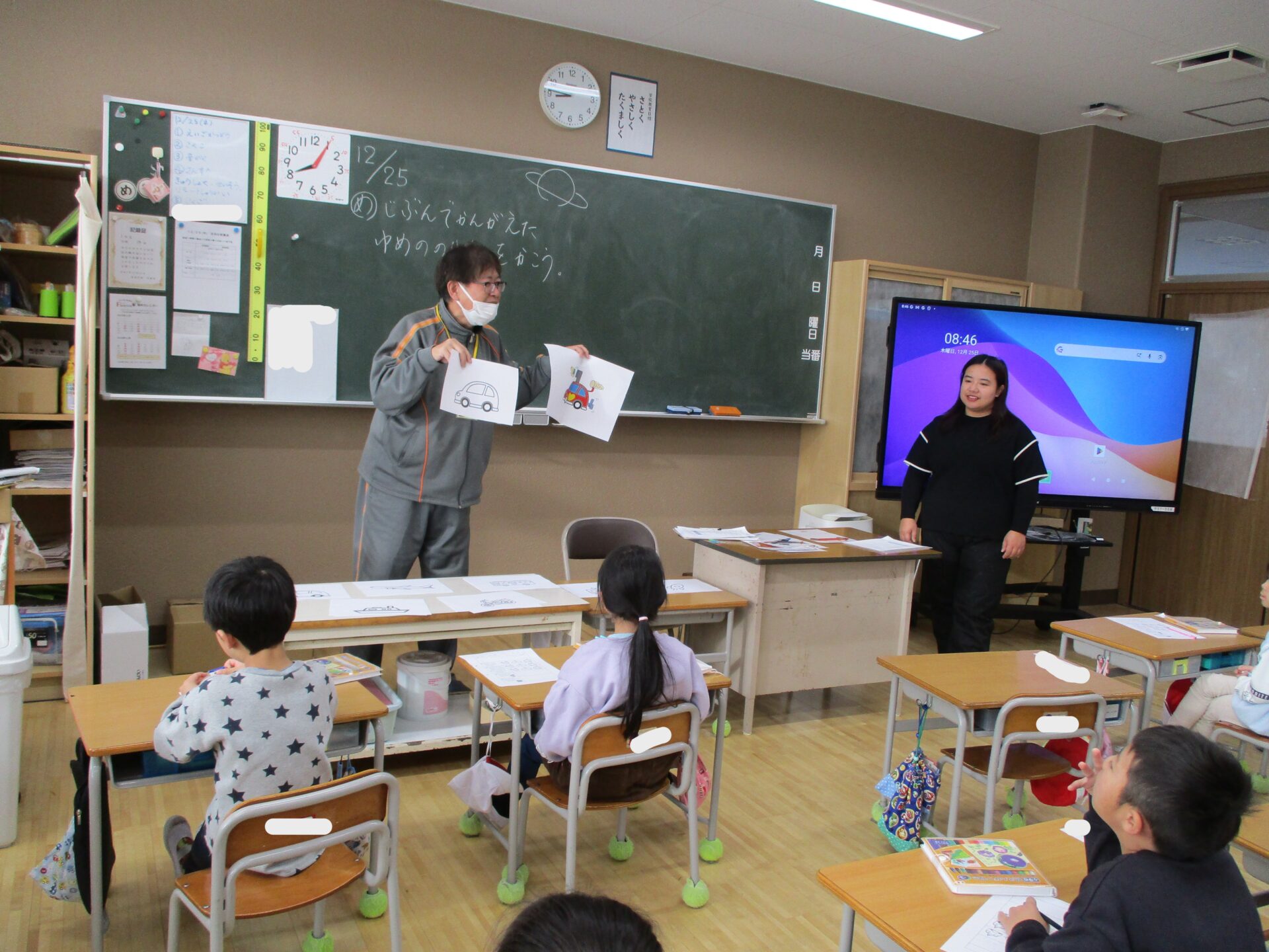 2025.12.25 1年生 好きな乗り物を英語で🚙 管理者学校 本日の英語活動では夢の乗り物を考えました。 はじめに一人一人が「I like car.」などと先生に伝え、好きな乗り物のカードをもらいました。 夢の乗り物の絵を描きます。 完成した絵をグループのお友達に紹介します。 この時も「I like ○○.」が言えました。 とても素敵な乗り物を考えました。 冬休み前集会はリモートで行われ、賞状をもらった子もいました。 楽しい冬休みを過ごし、良いお年をお迎えください🌄 1月8日に元気な1年生に会えるのを楽しみにしています🐎 #1年生