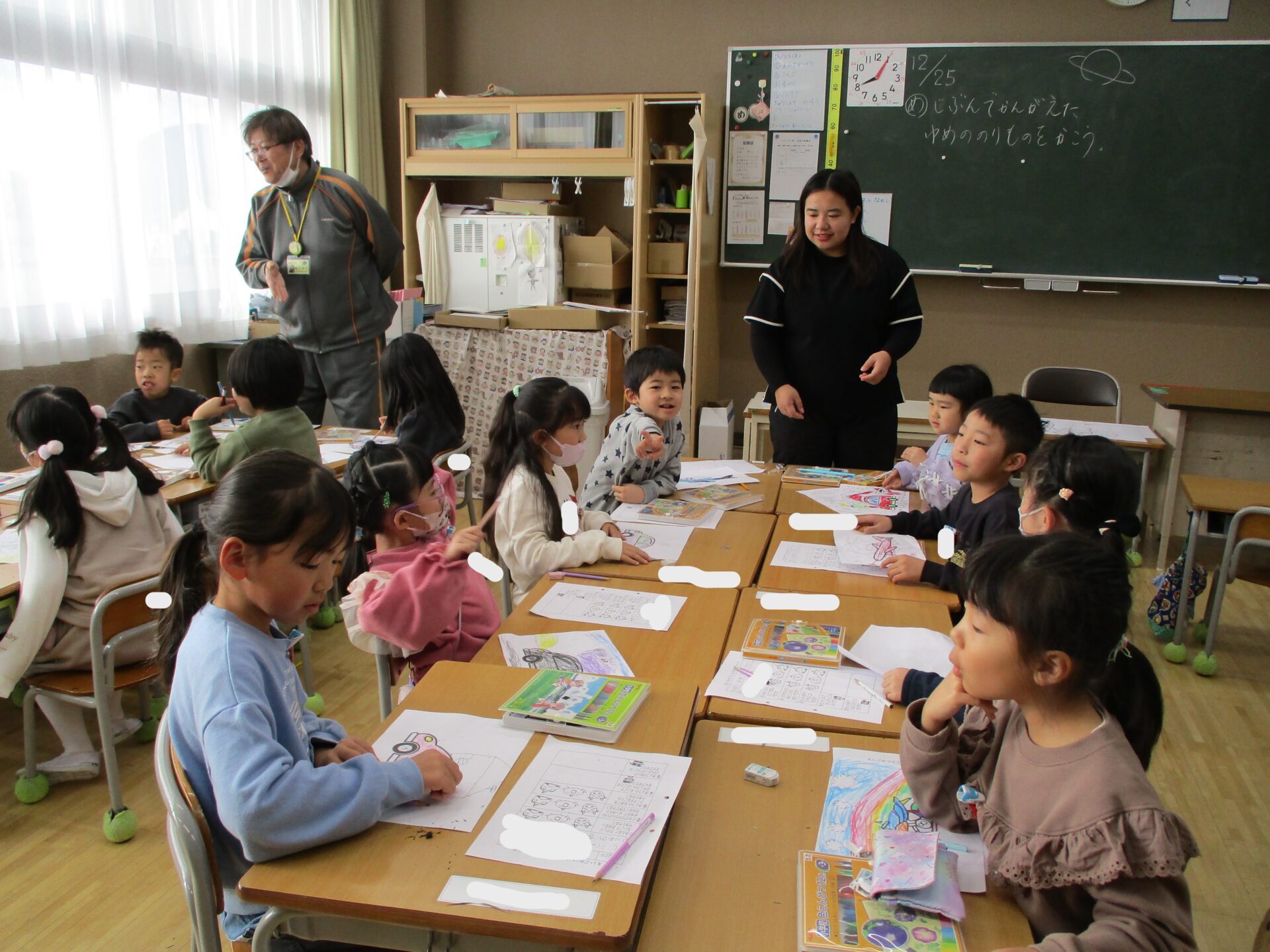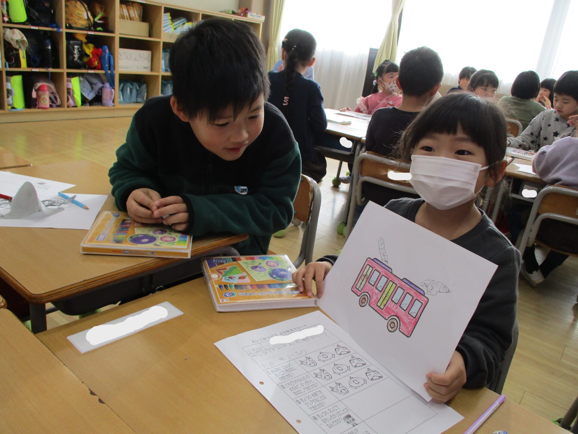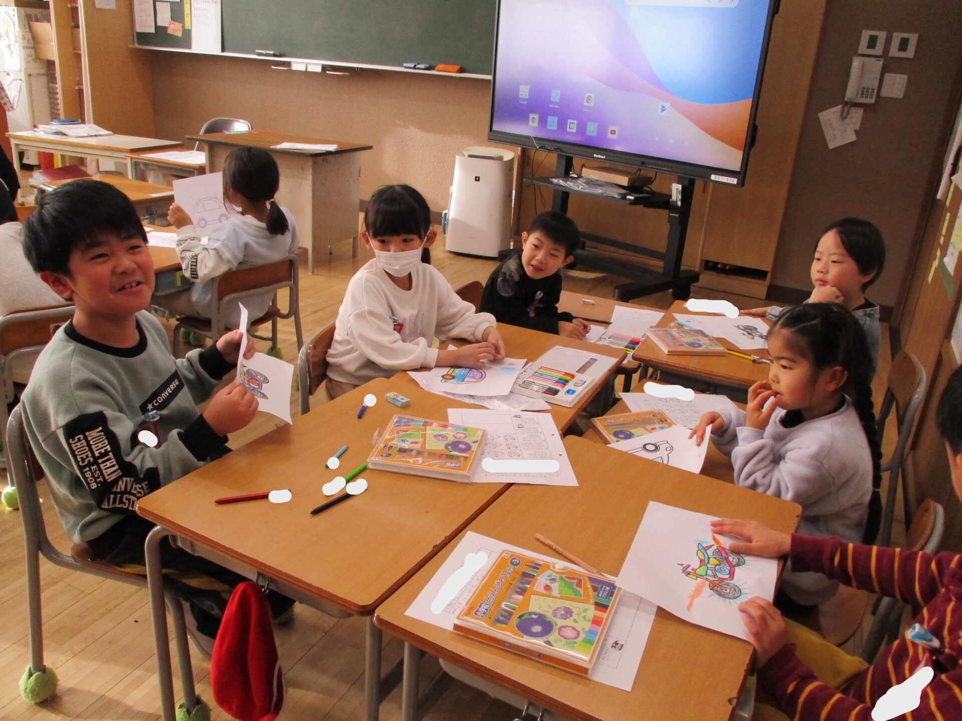 2025.12.25 1年生 好きな乗り物を英語で🚙 管理者学校 本日の英語活動では夢の乗り物を考えました。 はじめに一人一人が「I like car.」などと先生に伝え、好きな乗り物のカードをもらいました。 夢の乗り物の絵を描きます。 完成した絵をグループのお友達に紹介します。 この時も「I like ○○.」が言えました。 とても素敵な乗り物を考えました。 冬休み前集会はリモートで行われ、賞状をもらった子もいました。 楽しい冬休みを過ごし、良いお年をお迎えください🌄 1月8日に元気な1年生に会えるのを楽しみにしています🐎 #1年生