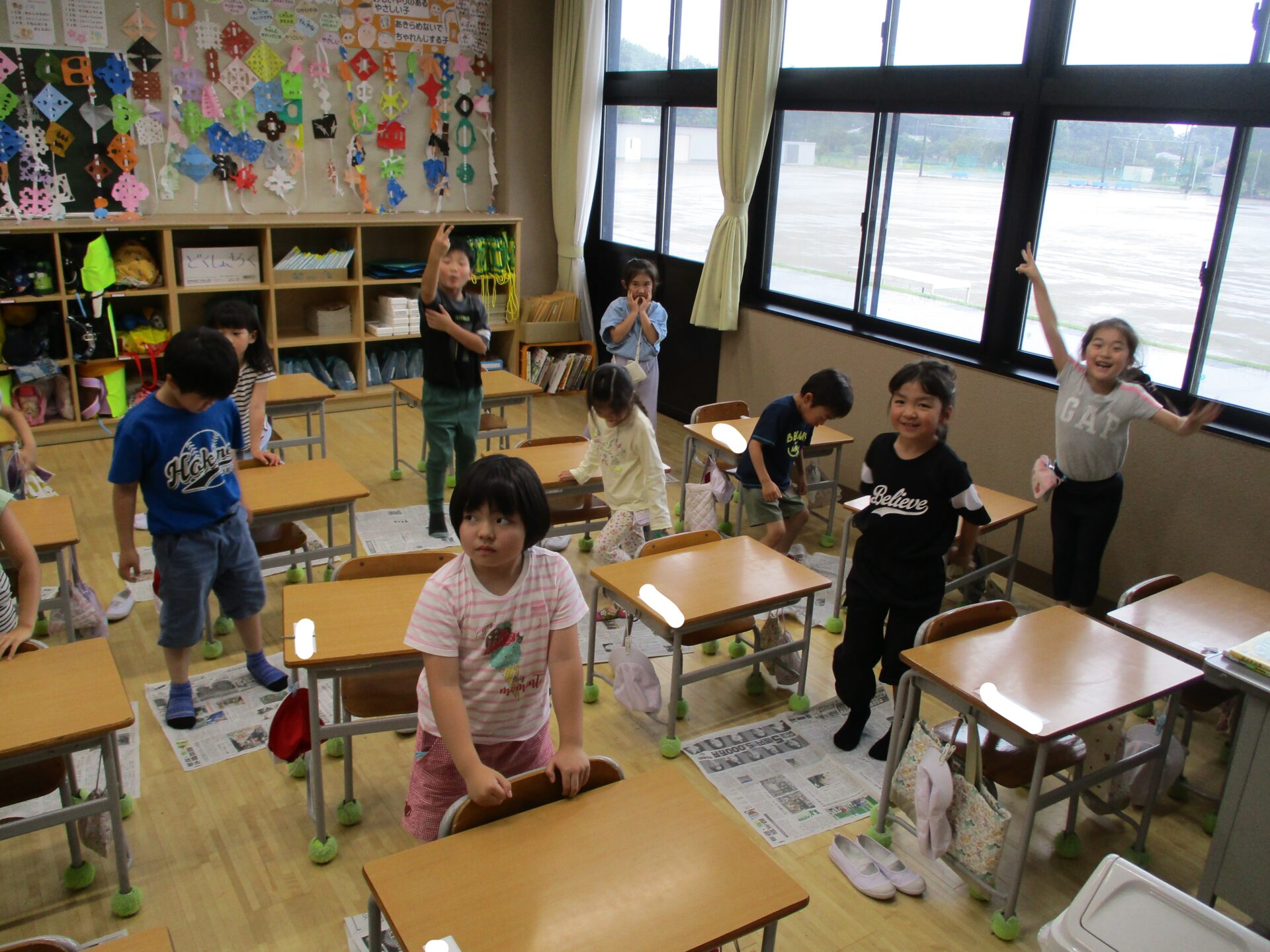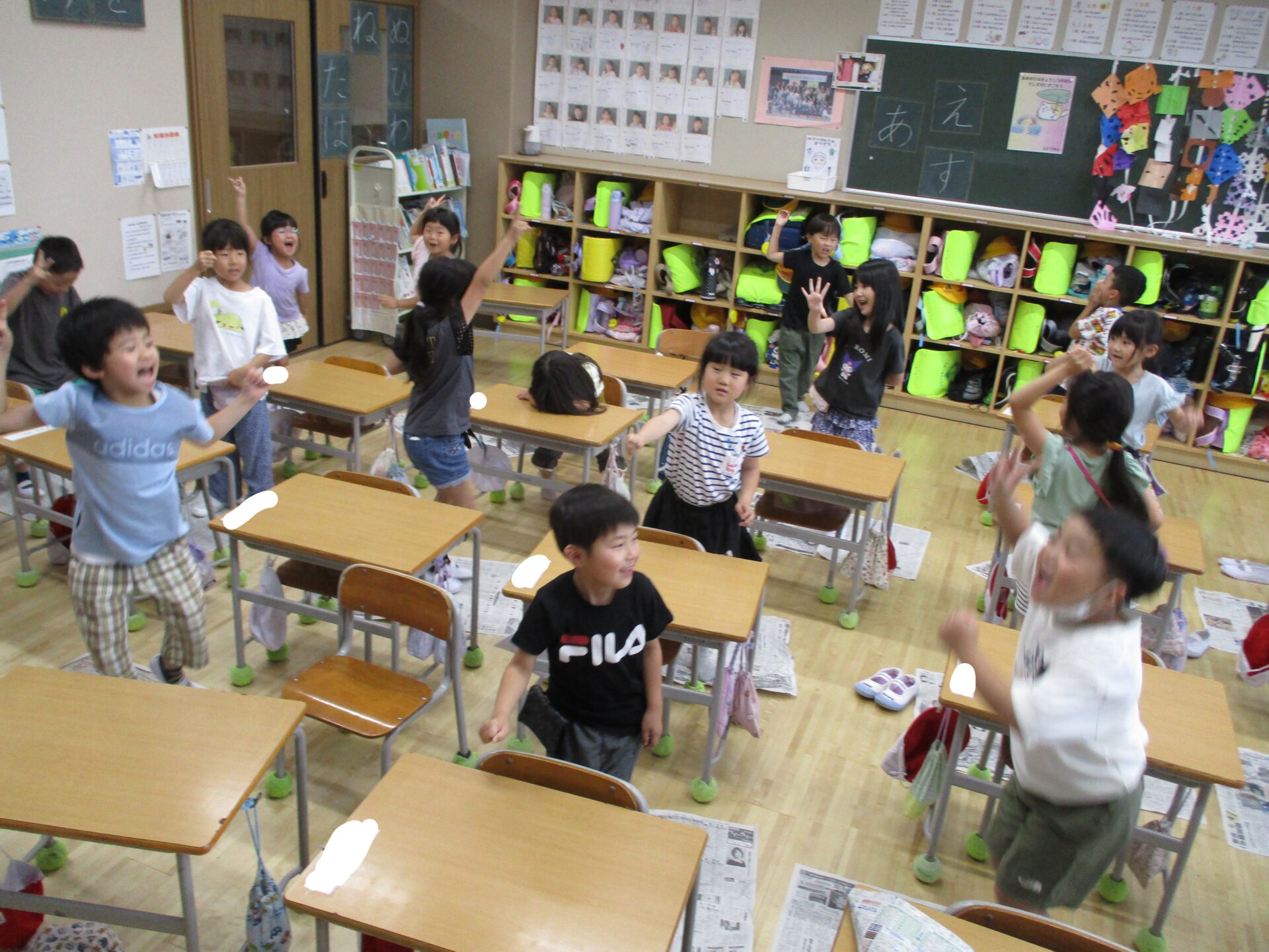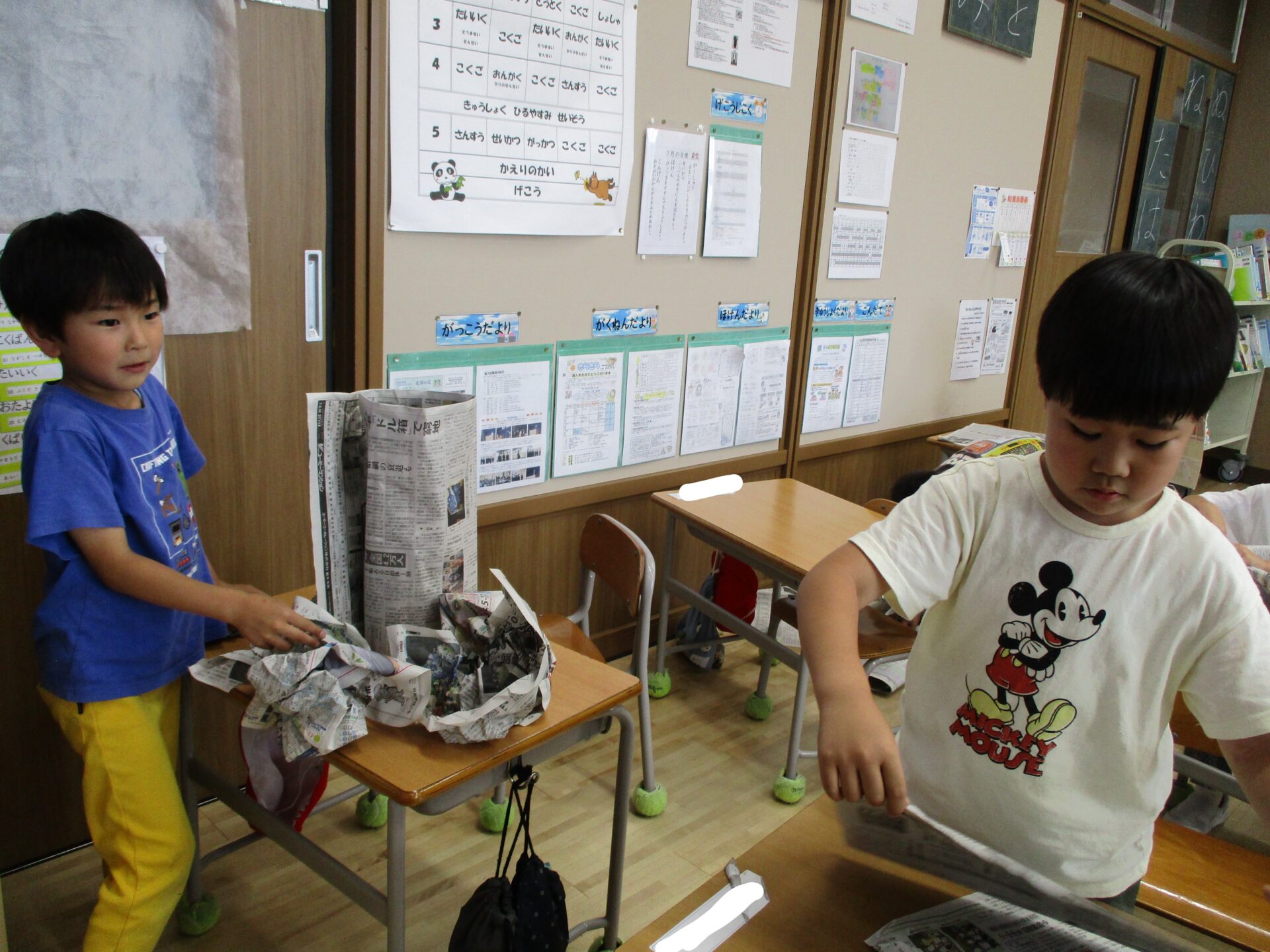 新聞紙を持ち帰りたいと言った子たちは持ち帰っています。