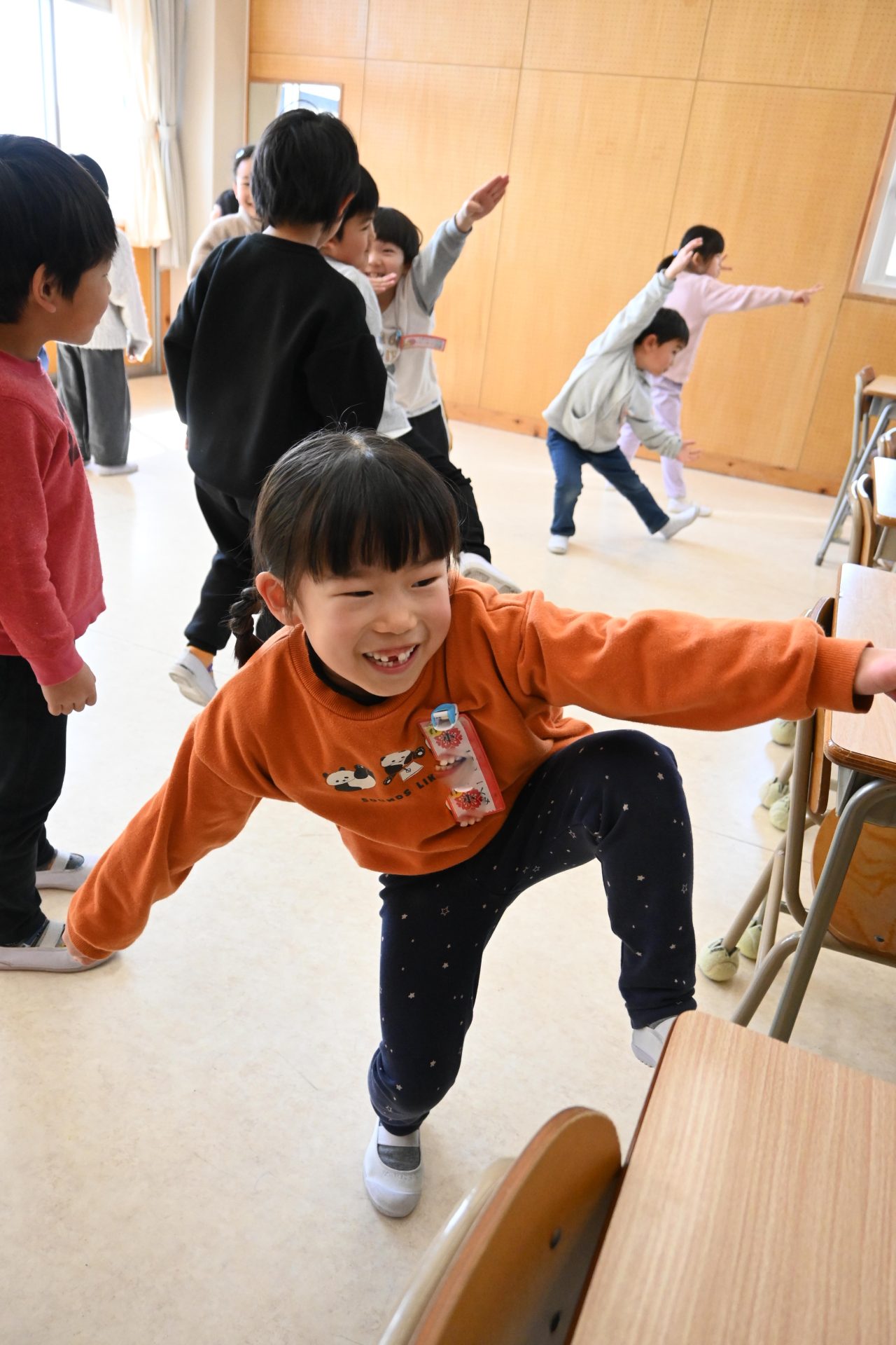 最後は、ボディーパーカッションをしました。子どもたちの個性あふれる決めポーズを御覧ください。