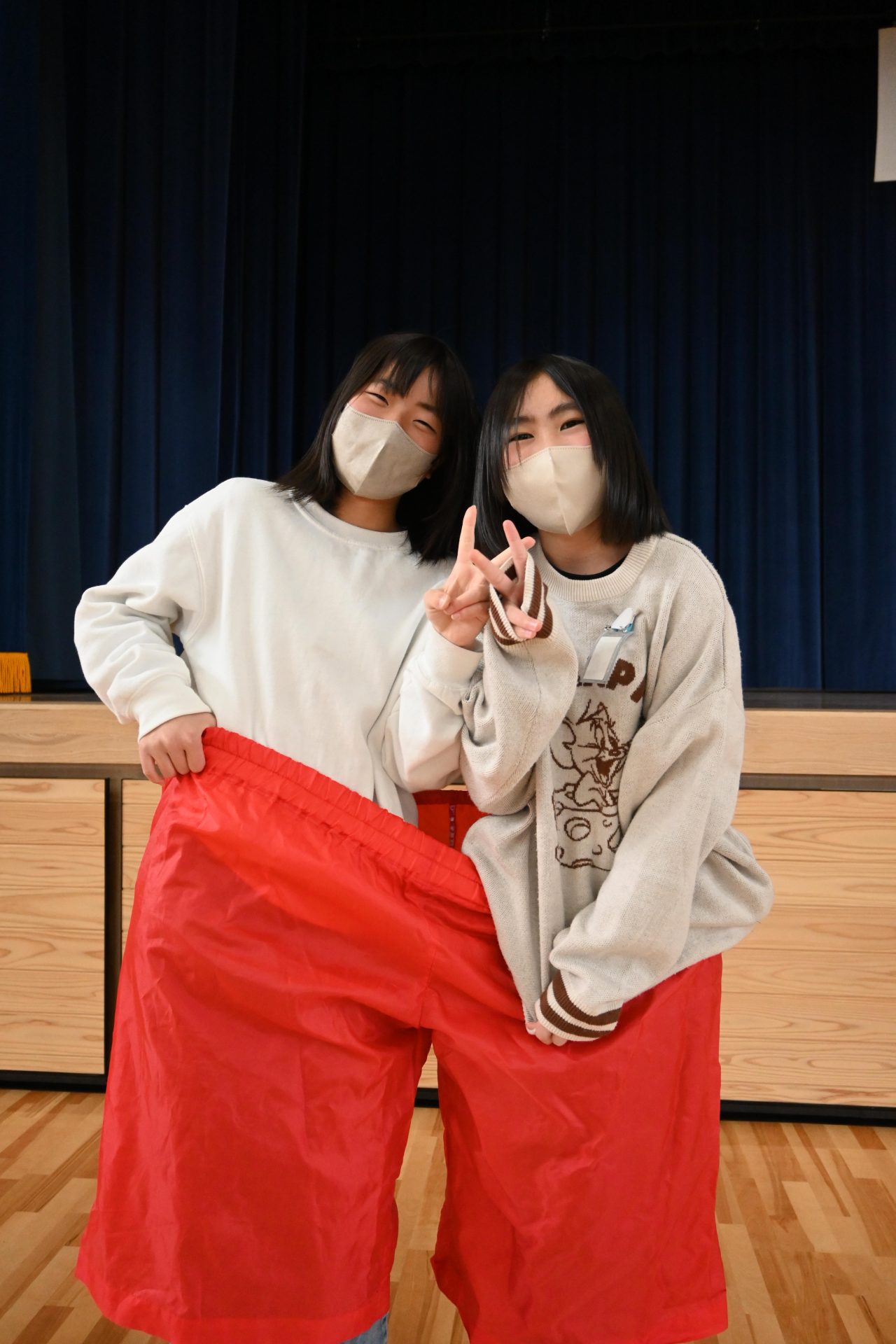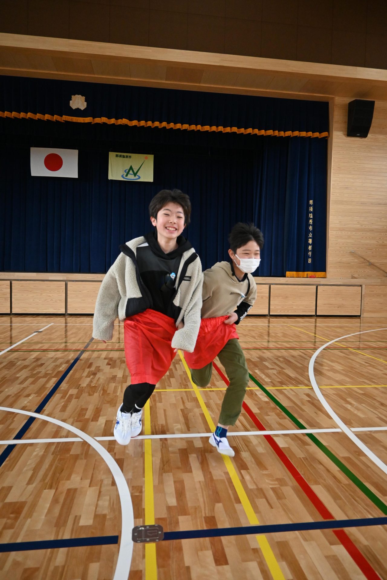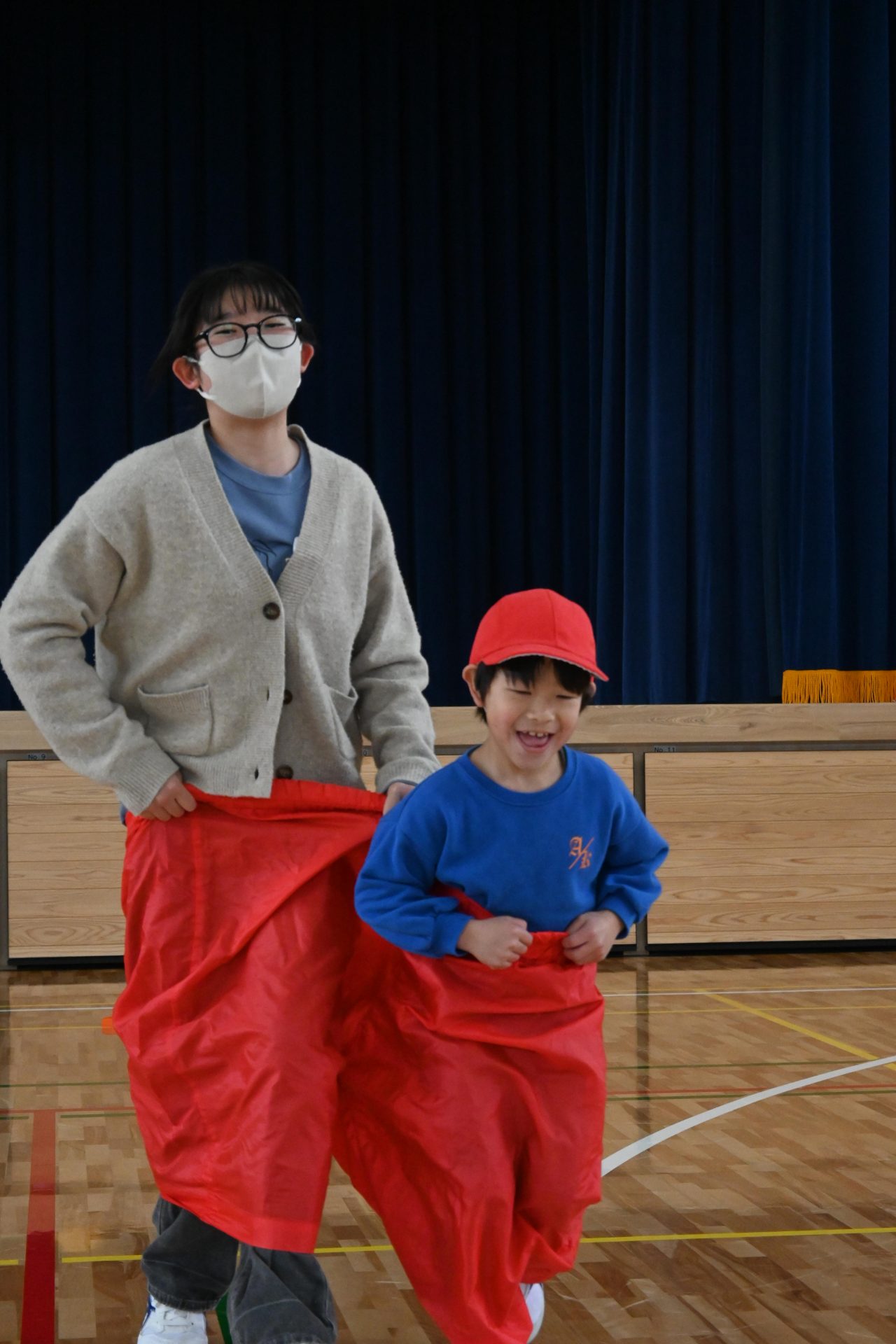 二つ目の遊びは、これまたおなじみのデカパンリレーでした。