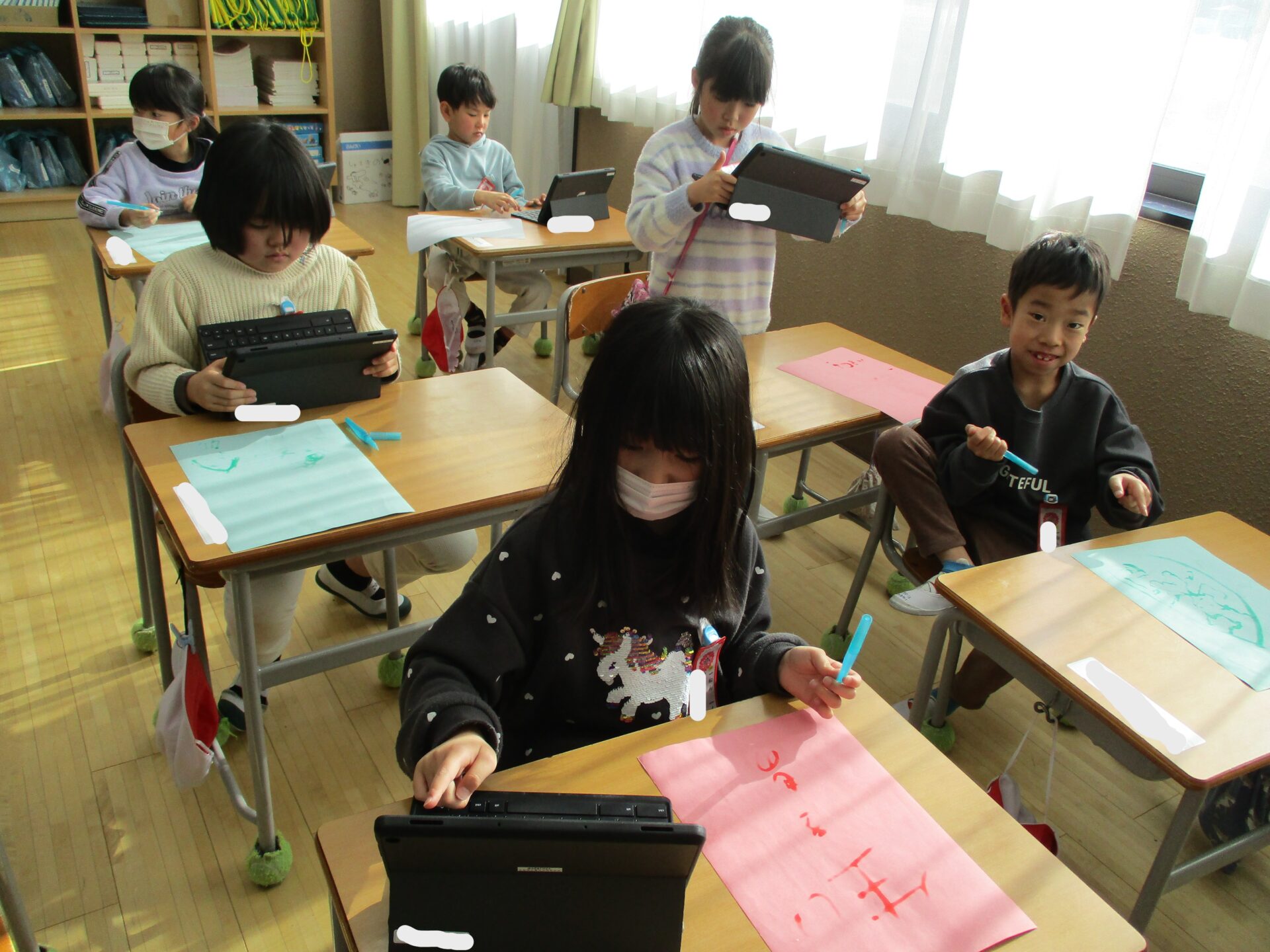 2026.01.16 1年生 水筆で書こう 管理者学校 今日の書写では水筆を使っていろいろな線を書いてみました。 とても落ち着いた態度で真剣に取り組みました。 字を書いたり絵を描いたりして楽しみました。 自分の名前も上手に書けました。 書いたものをタブレットで撮影しました。 撮影した写真をClassroomに提出して、お友達の作品も見ることができました。 お話を聞いてよく頑張りました。 また水筆で勉強しましょう☺ #1年生