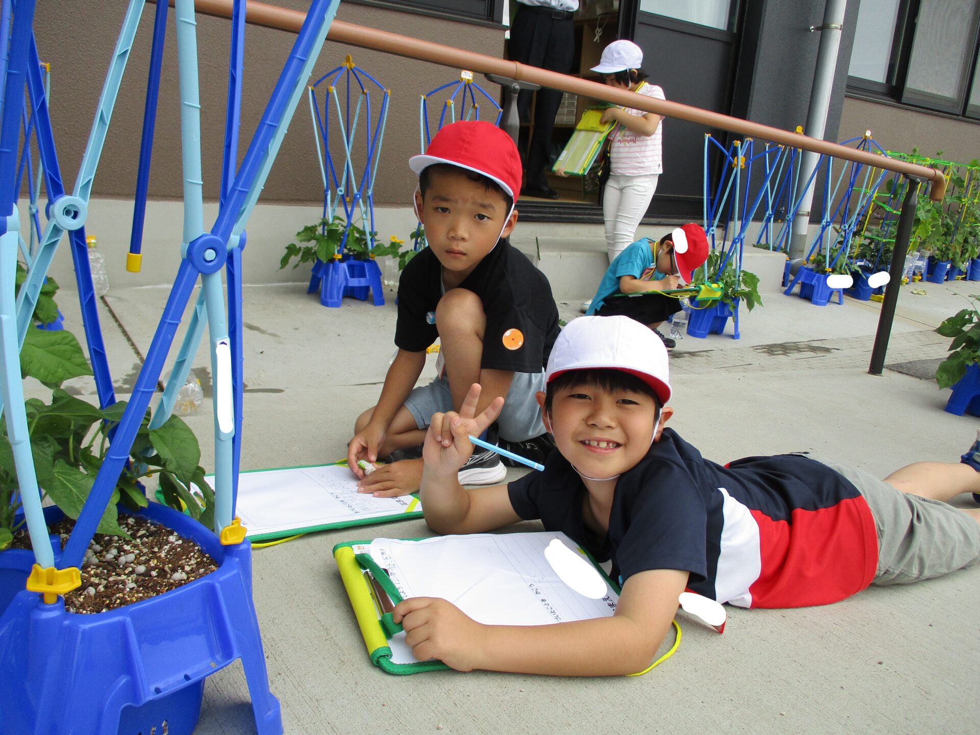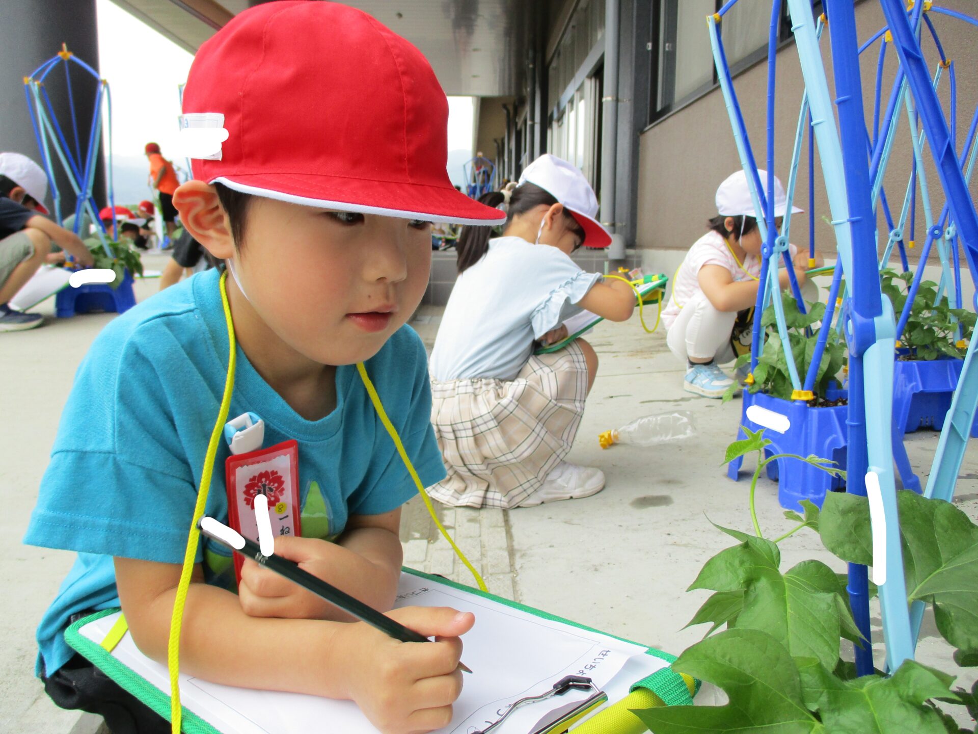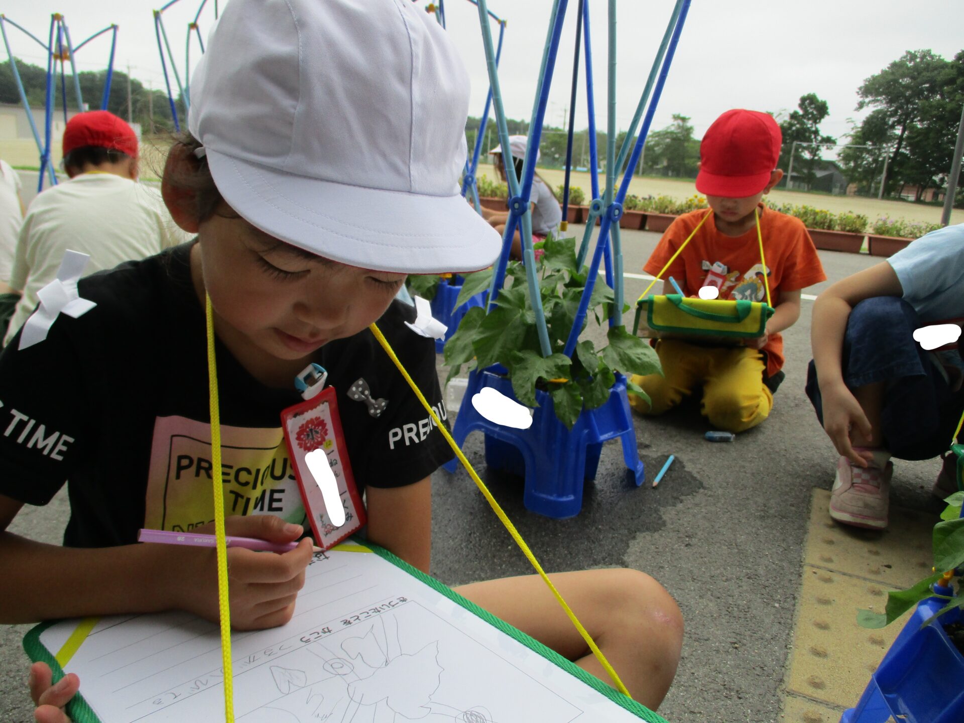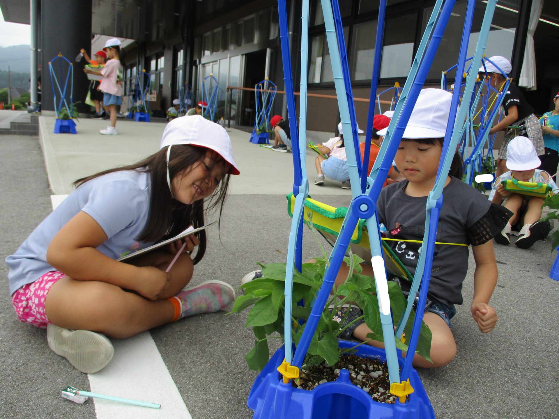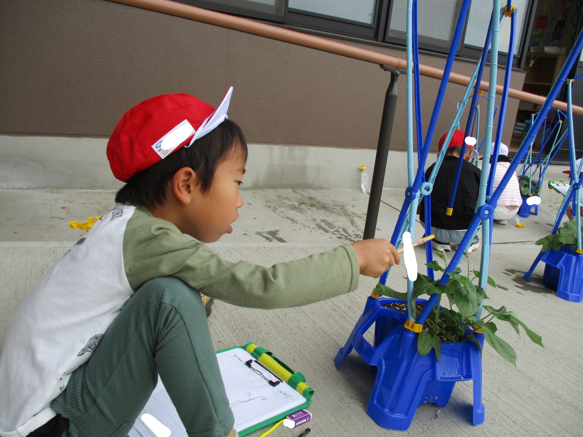 伸び始めたつるの先を見て、つぼみがついたのかな?と思った子がたくさんいました。