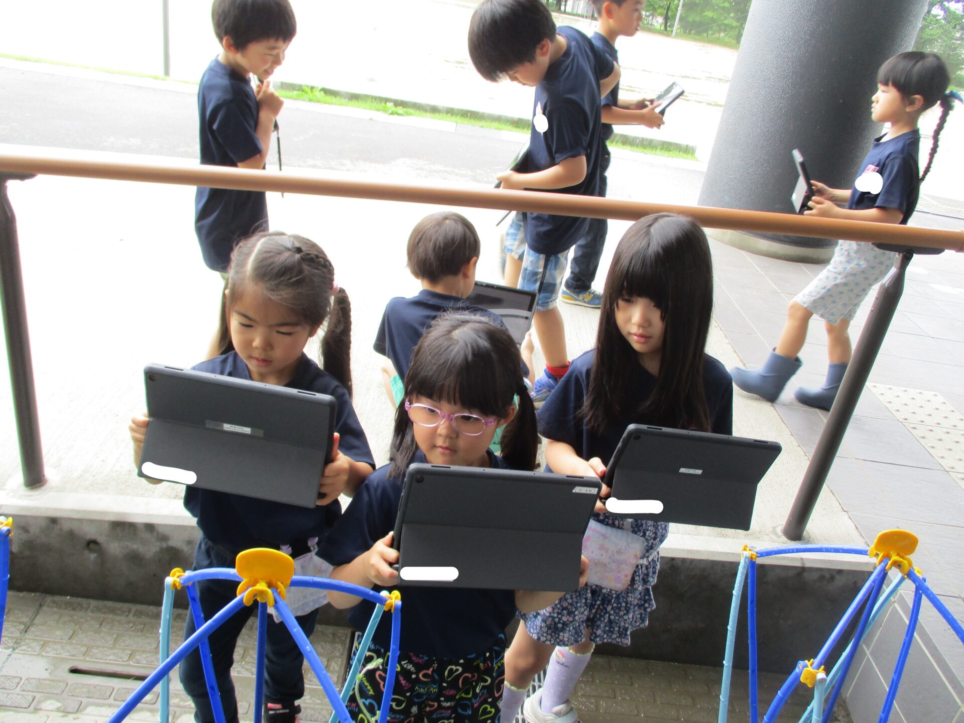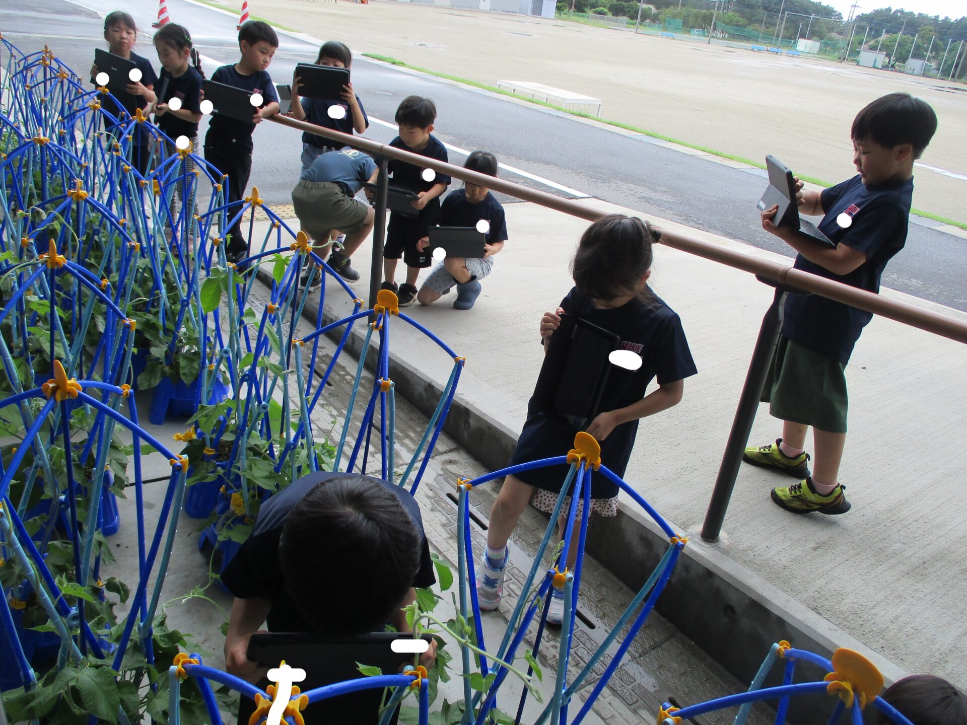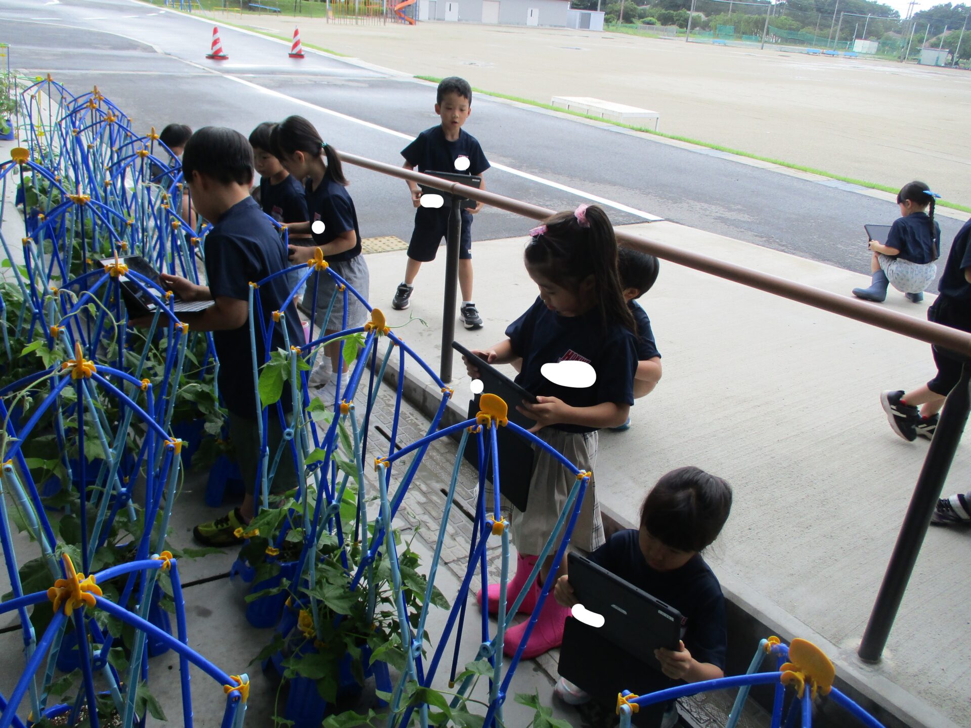 お天気が不安定なため、アサガオの観察はタブレットに写真を撮って行いました。