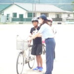 3年生から6年生は、自転車の正しい乗り方や横断歩道の渡り方を確認しました。各学年とも代表の児童が自転車に乗りました。大きな声で確認をすることができ、指導してくださった生活安全課の方に「すばらしい」とのお褒めの言葉を頂きました。