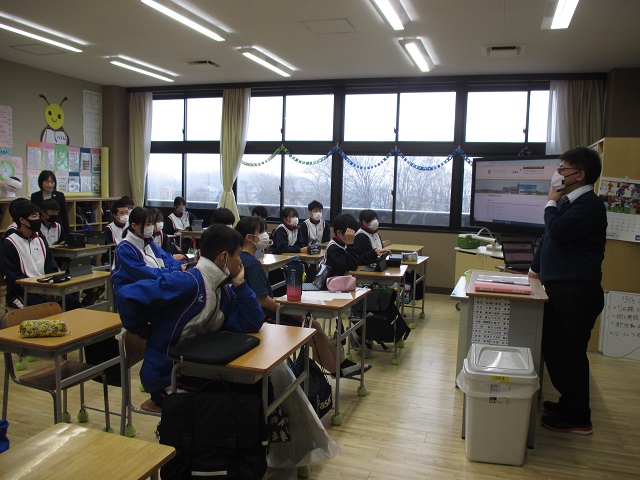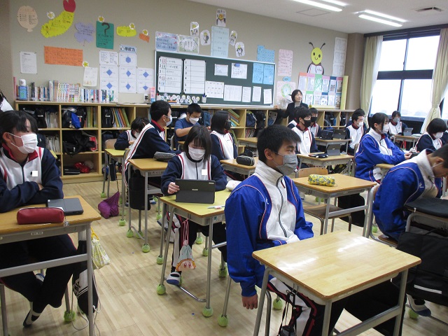 学校の様子をお話した後、授業中の教室を見て下さいました。前期課程と後期課程が隣の教室になっていることや、子供たちがタブレットを当たり前の道具にして使っている様子にとても驚いていらっしゃいました。
