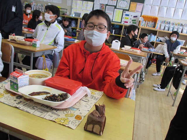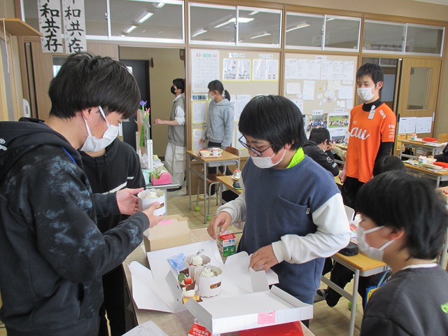 今日はとても嬉しいことがありました。高校入試前に体調を崩させてはいけないと2月の朝ごはんプロジェクトが中止になった代わりに、箒根サポーターズから6年生と9年生に卒業&進級お祝いのケーキが届きました。