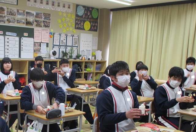 大事そうにケーキを抱えて席に着くと、みんなにこにこ笑顔です。ケーキには人を幸せにする不思議な力があるようです。同じ教室でこのメンバーと過ごす時間は残りわずかです。これまで頑張ってきた子供たちへの御褒美と、彼らのこれからへのエールのこもった特製ケーキは最高のおいしさでした。