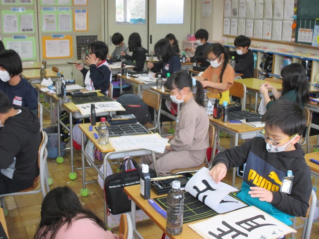3年生はお習字に全集中!です。最高傑作を書くんだと張り切っていました。長い時間集中して頑張ることができるようになった子供たちに、大きな成長を感じました。