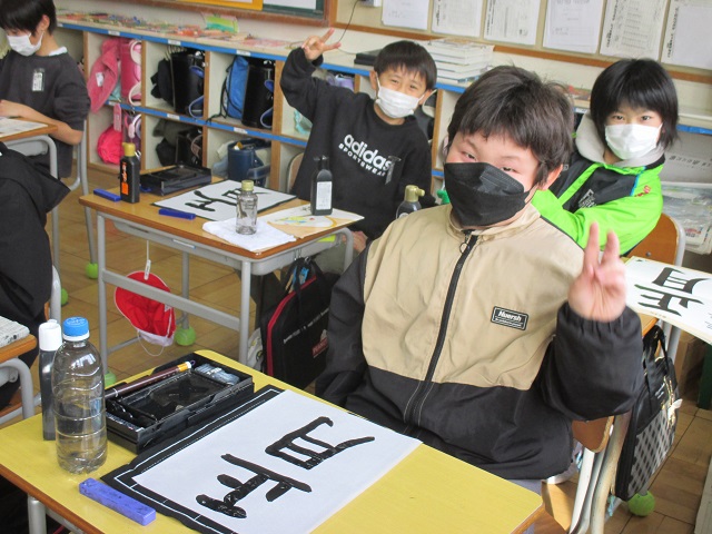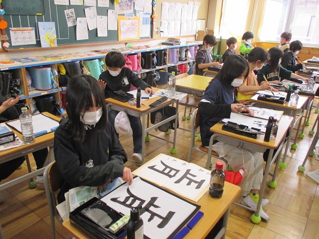 3年生はお習字に全集中!です。最高傑作を書くんだと張り切っていました。長い時間集中して頑張ることができるようになった子供たちに、大きな成長を感じました。