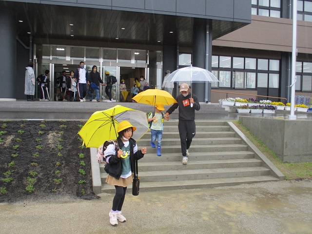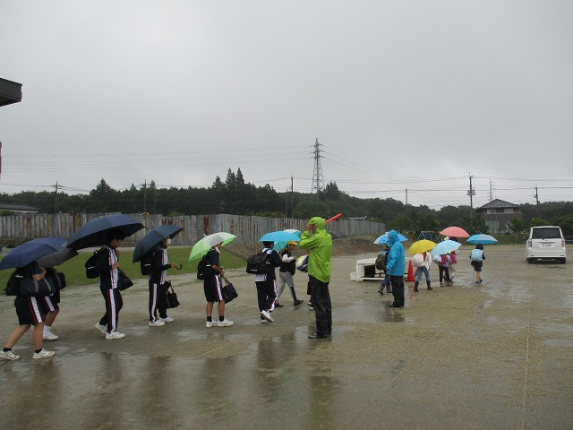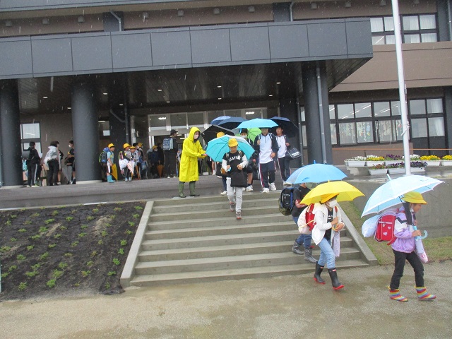 記録的な大雨が降るという天気予報を受けて、午前中授業の早帰りを昨夕決定しました。地域ポータルで一斉メールを送らせていただいたのですが、夜遅くまでアクセスできない状態が続き大変御迷惑をおかけしました。運営会社からの連絡では、予定された以上のアクセスが一気に重なったことが不具合の原因だそうです。サーバーの容量を増やしたので今後は大丈夫だそうです。そんなトラブルもあったため、初めての一斉お迎え下校がうまくいくかと心配しましたが、保護者の皆様がルールを守って協力してくださったお陰で、予想以上にスムーズに下校させることができました。御協力を頂きありがとうございました。