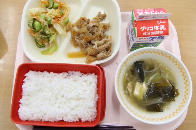 今日の献立は、焼き肉、チョレギサラダ、春雨スープ。