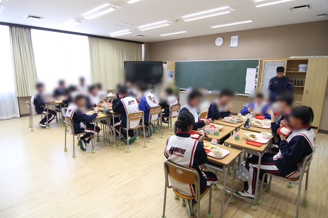 新しい教室での給食。
