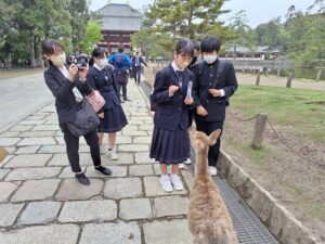 2023.04.19 2023.04.27 全校生 僕たちの First travel⑤ 管理者学校 東大寺から興福寺まで歩き、地域クーポンでお買い物をして旅館に着きました。皆、元気です。校長と教頭は、もう歩けません😫 #9年生#全校生
