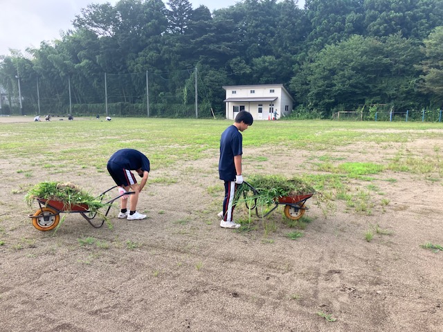 送迎用駐車場にPTA会長の臼井さんと9年生のお嬢さんがロープを張って枠を作ってくれました。そのお陰で毎朝整然と車を駐車出来ています。本当にありがとうございました。