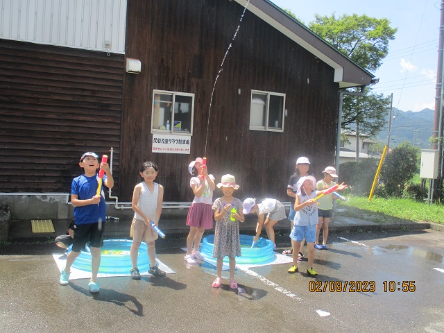 8月も2日目を迎えました。正門をくぐったら、児童クラブの子供たちが元気いっぱいに水鉄砲で遊んでいました。車から降りて近付くと「あ、校長先生だ!みんな、校長先生をねらっちゃだめだよ!」と優しい声がかかりました。午後には会議が控えていたので、びしょ濡れにならず助かりました。