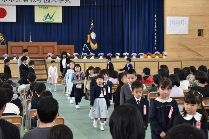 2025.04.09 全校生 入学式が行われました 管理者学校 4月9日(水)に、PTA会長をお招きし入学式が行われました。今年度の新入生は27名です。6年生のお兄さんお姉さんに手をつながれて会場に入場してきました。担任の先生の呼名に大きな声で元気に返事をしました。児童生徒会長の歓迎の言葉に新入生の皆さんは目を輝かせていました。 新入生は、とても立派な態度で式に参加しました。これからの学校生活での活躍がとても楽しみです。 #全校生