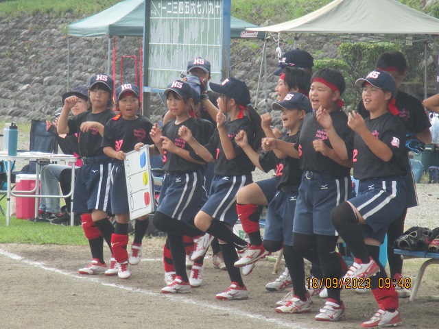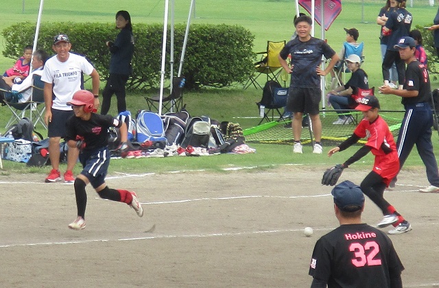 今日は山梨のチームと交流試合を行いました。立ち上がりに4点を失いましたが、6年生の長打で同点に追いつくことができました。春先から頂点に立つことを目指して、これでもかと言うほどに練習を積み重ねてきた子供たちの努力が実った試合であったと思います。時間切れのため抽選となりましたが、天が味方して勝利することができ、午後の試合につながりました。飛び跳ねて喜ぶ子供たちの姿に見ている大人達もうれしくなりました。