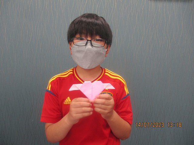 6年生の男の子が校長の好きなピンク色の折紙でハートを作ってプレゼントしてくれました。とってもうれしかったです。