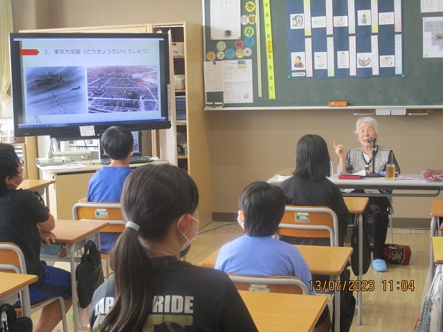 今週もなかなか記事を書くことが出来ませんでしたが、学年毎の様子は担任がお知らせした通りです。6年生では塩原にお住まいの君島希枝子さんをお招きして、戦争体験講話を頂きました。東京空襲の生々しいお話など、子供たちも真剣なまなざしでお話に聴き入っていました。偶然お出でいただいた日が希枝子さんの92歳のお誕生日だったので、お見送りに来た子供たちがハッピーバースデイの歌を歌ってお祝いしました。