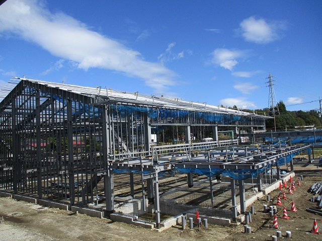 体育館がものすごい勢いでできあがっていきます。とても大きい立派な体育館になりそうです。