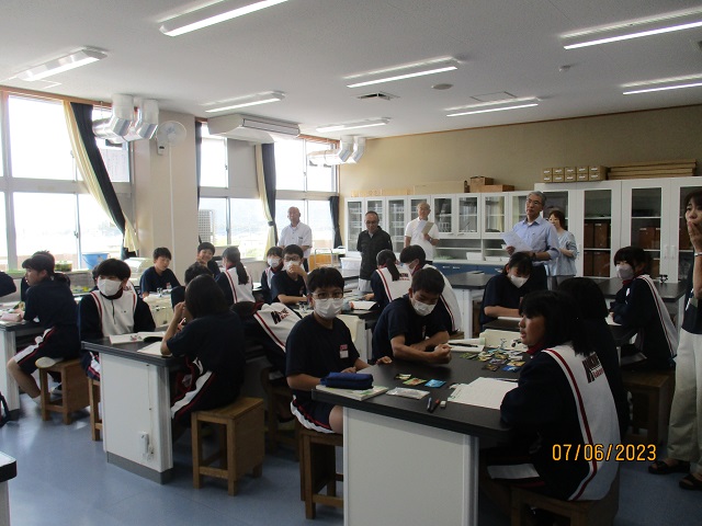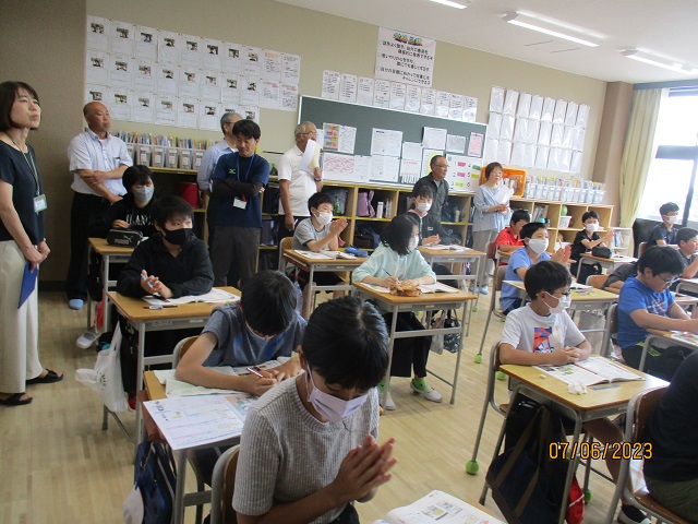 授業参観もしていただいたのですが、新しい校舎の中で生き生きと活動する子供たちの様子を笑顔で見守って下さいました。参観後の話し合いでは、「子供たちがコロナの時と違って元気だったので安心した」「小さな学校から来た子供たちも皆と仲良く出来ていて安心した」などの感想を頂きました。