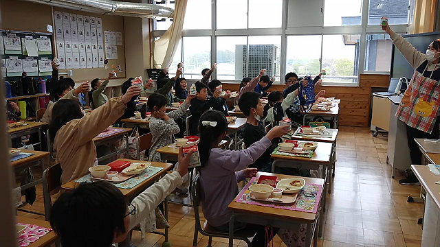 箒根学園、開校おめでとう!!牛乳でかんぱーい!!