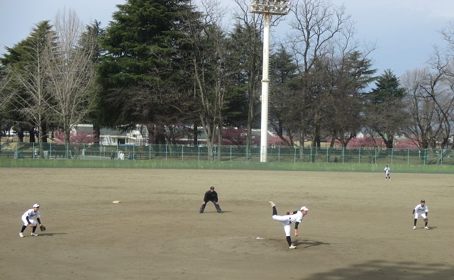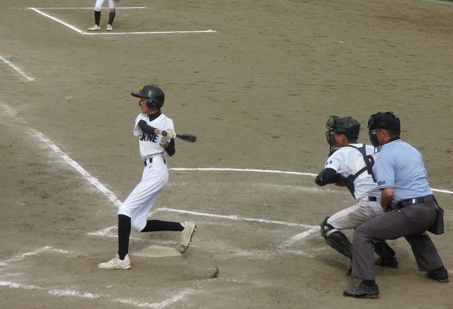 小学生の試合を途中まで見て、美原球場へ移動しました。優勝チームを初戦で下してから快進撃を続けている中学生(後期課程)の準決勝戦を見るためです。全力を出せば優勝も夢ではないところまで来ています。