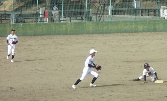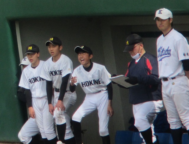 小学生の試合を途中まで見て、美原球場へ移動しました。優勝チームを初戦で下してから快進撃を続けている中学生(後期課程)の準決勝戦を見るためです。全力を出せば優勝も夢ではないところまで来ています。