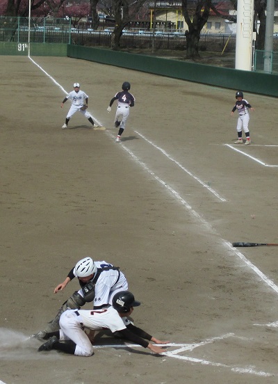 その後流れた場内アナウンスで、試合は最終回であることが分かりました。対する相手は大田原・野崎連合で、馬力のあるチームです。箒根・黒磯北連合も必死に食らいつき、2対1の1点差に追いつきましたが、力及ばずそのまま試合は終わりを迎えました。聞けば、相手チームのピッチャーは女子で、スピードボールを打つことになれていた選手達は待ちきれずに打ちに行ってしまい、フライが続いたそうです。