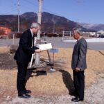 箒根学園開校にあたり、学問の木と言われる「楷の木」と巨大な絵画を寄贈くださった横林地区の印南洋人様に、教育委員会より感謝状が贈られました。お天気も良く、まずは楷の木の前で記念撮影を行いました。美しい木立は青空に映え、春になると緑の葉に覆われて子供たちを見守ってくれます。