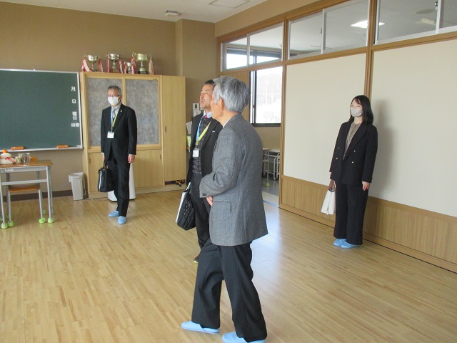 記念撮影の後は校舎内の教室の様子や新しい体育館を見て頂きました。旧横林小の子供たちが「あ、知ってるおじさんだ。今日は!」と挨拶に来てくれました。箒根学園での生活にもすっかり慣れた子供たちの元気いっぱいの笑顔を見て、印南様も心から喜んでくださいました。