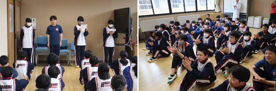昼休みにはブロック集会が行われ、各クラスの紹介や今年度の意気込みが発表されました。