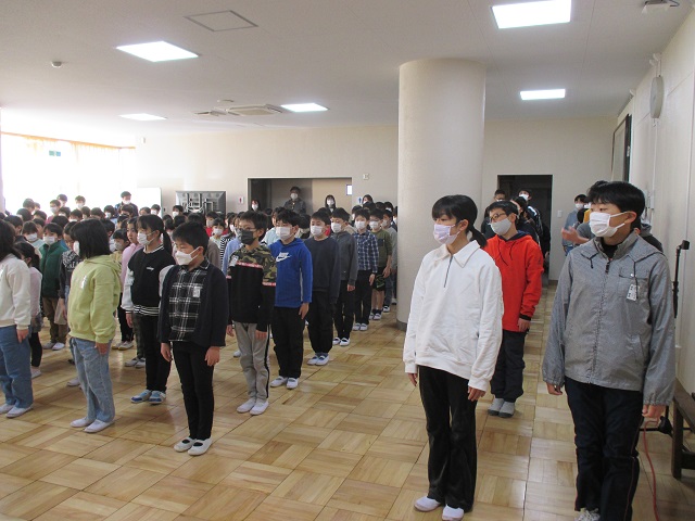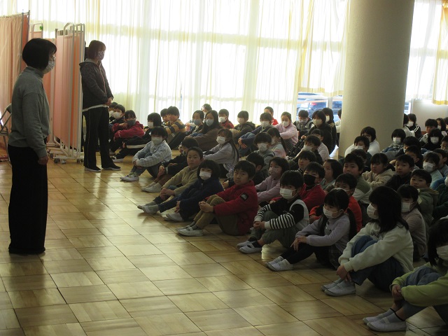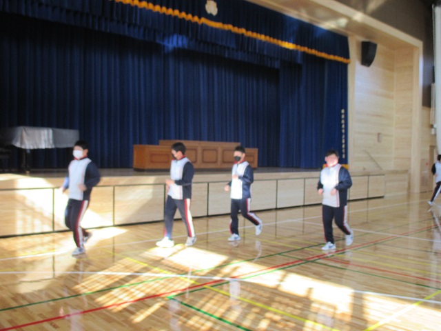 前期課程の子供たちは毎日多目的室に集まって、卒業式の練習をしています。体育館が使えないので少し不便ですが、低学年の子供たちも懸命に頑張っています。