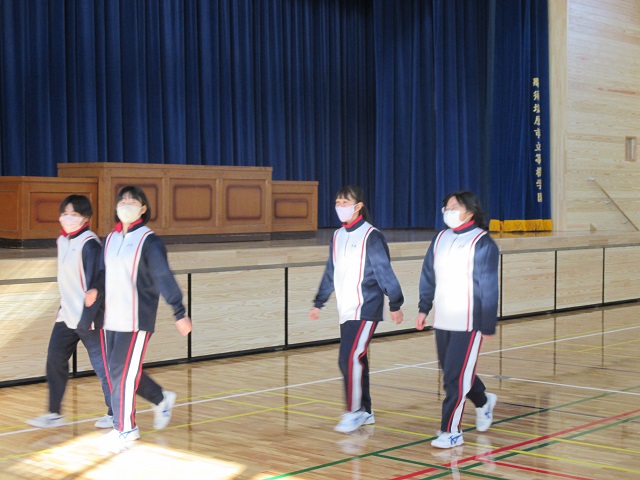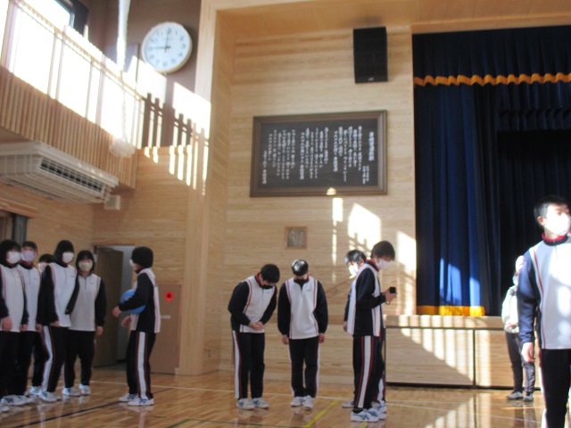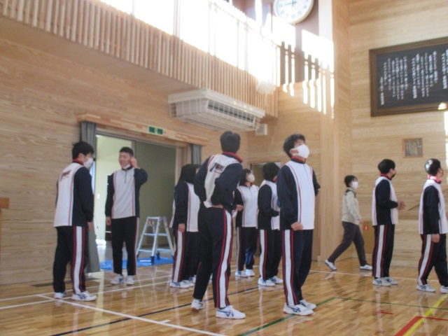 つかの間の30分でしたが、とても楽しく思い出に残る30分になりました。最後は教育委員会の担当の方に御礼を言って記念写真を撮りました。体育館の全容がわかり、卒業式に向けての心の準備も整いました。きっと最高の感動あふれる卒業式になることでしょう。