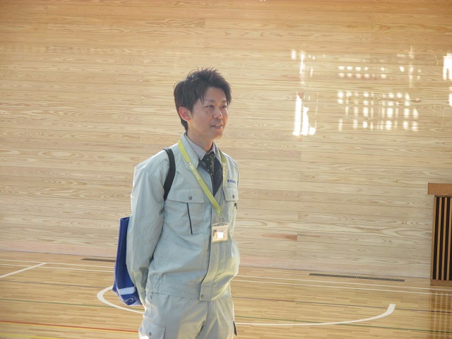 明日市長さんや教育長さんの視察を終えると体育館の引き渡しになるのですが、その後すぐに卒業式に向けてフロアにシートを引くことになっています。光り輝くフロアを卒業前に見せてあげたいと、教育委員会の方々が30分だけ許可を下さいました。ドキドキワクワク目を輝かせて体育館の扉の前に立った子供たちは、開かれた扉の向こうに広がる美しい体育館に歓声を上げました。