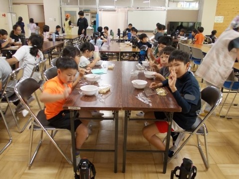 6月20日(金)に箒根サポーターズクラブの皆さんにより、朝ごはんプロジェクトが実施されました。「すべての児童生徒がおなかいっぱいご飯を食べて、学校生活を楽しくがんばってほしい」という思いから、月に1回程度「朝ごはんプロジェクト」と称して、児童生徒に朝ご飯が無償で振り舞われています。今回は、チャーハンとラーメンを提供してくれました。朝早くから学校内にラーメンやの匂いが漂い、児童生徒たちの顔も笑顔でいっぱいでした。そして、実際に食べると「おいしい!」という声が学校中に響き渡っていました。おかげて、一日を温かい気持ちでスタートさせることができました。サポーターズクラブの皆さんありがとうございました。