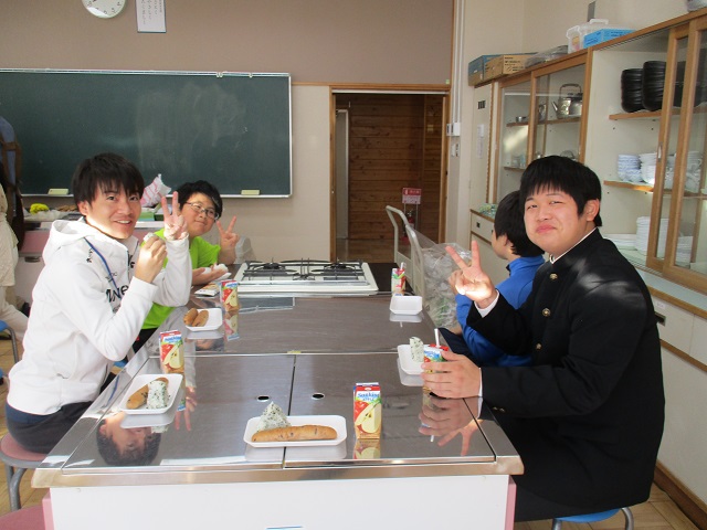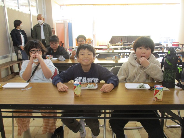 関谷小以外の小学校から来た子供たちも大勢参加しました。中学生用の会場となった技術室が満席になり、会議室も解放しました。塩結びを食べた8年生の男子が「やっぱり、最高!!」と言ってくれました。隣の部屋では「平山さん、おいしいお米をありがとう!」と思わずみんなで拍手していました。会場には温かい空気が満ちて、子供たちの笑顔とそれをうれしげに見守るサポーターズクラブの皆さんの達成感で一杯でした。